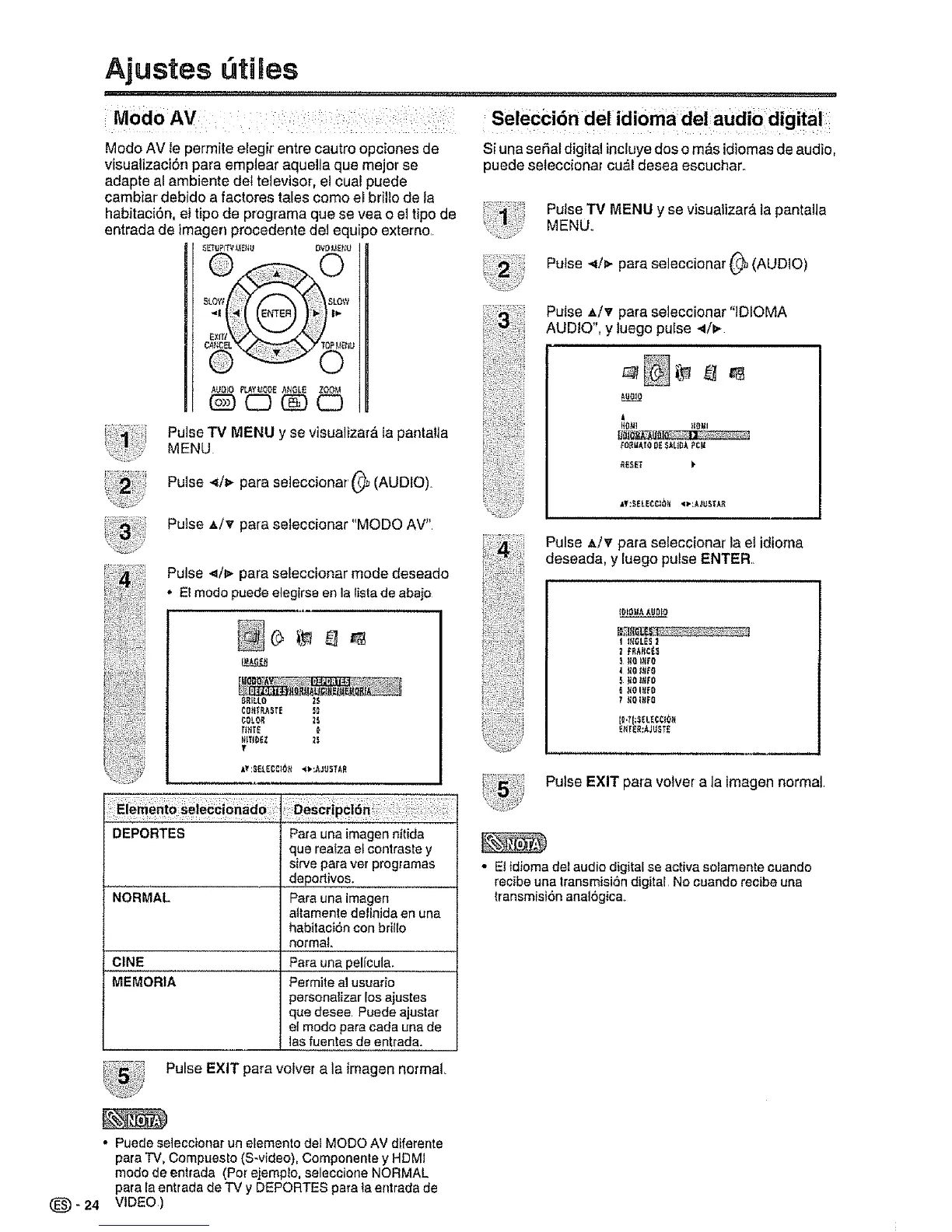 • Puede selecctonarunelementodel MODOAV diferente