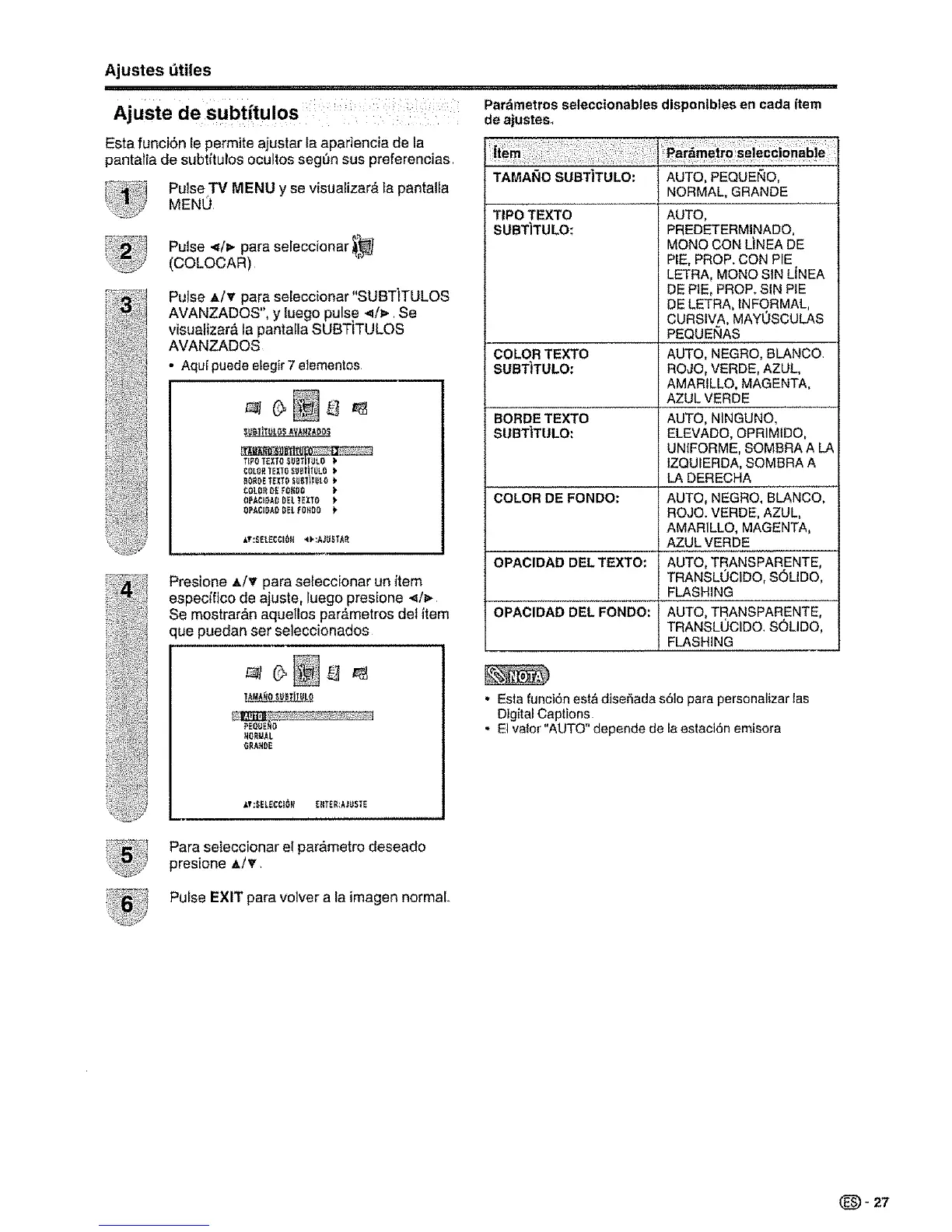 Pulse .a/v' para seleccionar "SUBTITULOS