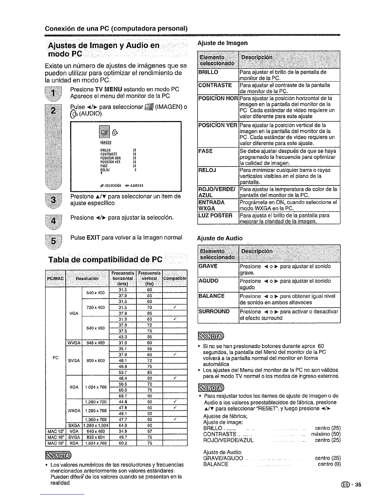 • Los ajustes del Menu del monitor de Ia PC no son v61idos