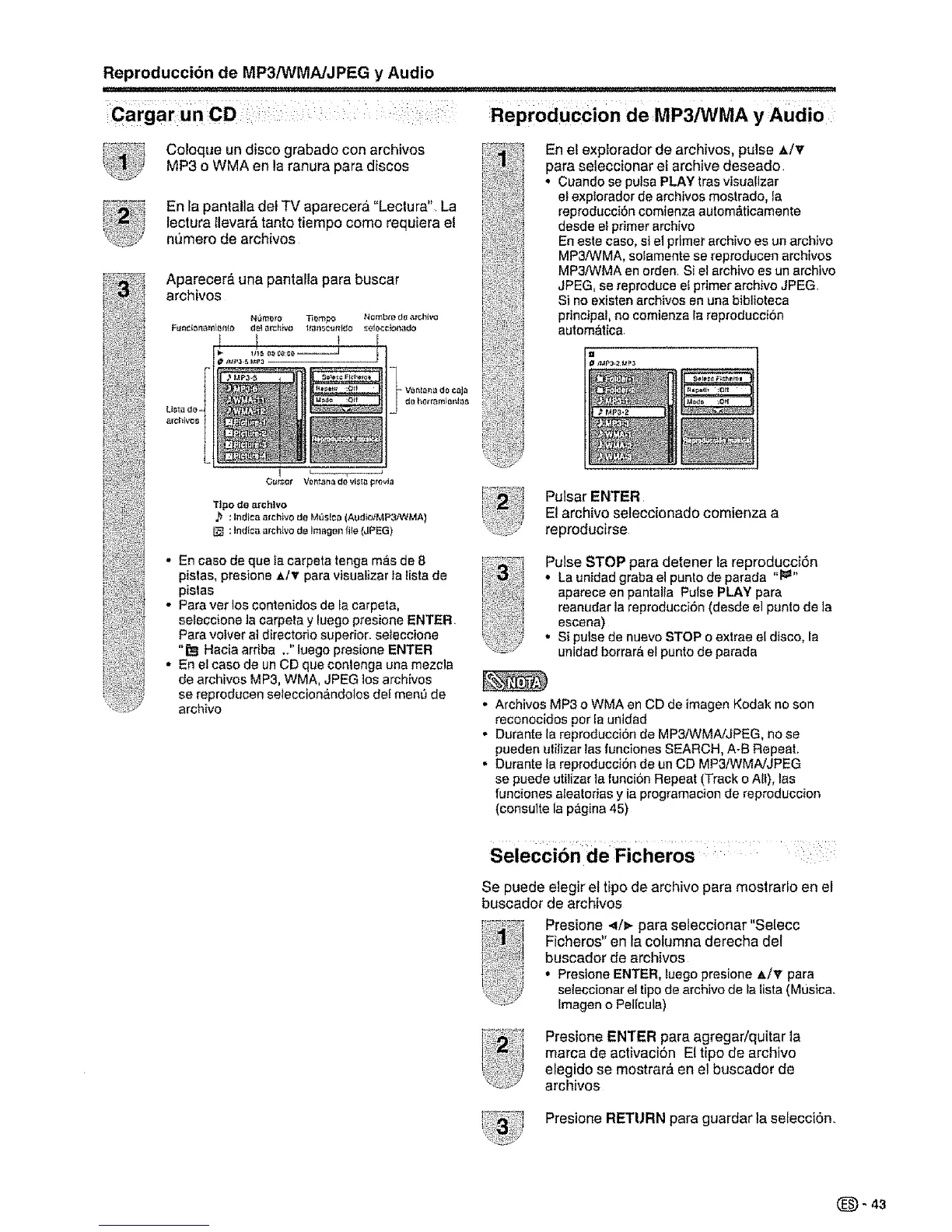 Reproducci6n de MP3/WMA/JPEG y Audio