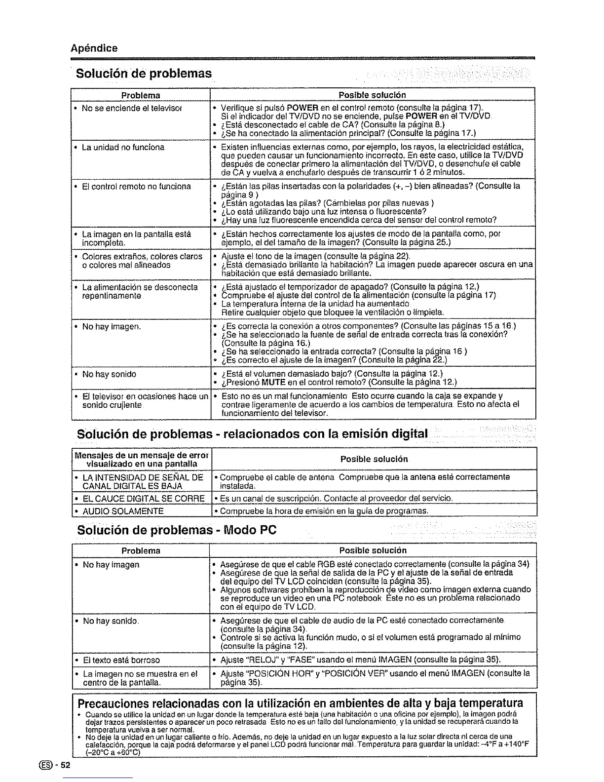 qua pueden causer un funcionamienfo [ncorrec[o. En este case, ulilice la TV/DVD