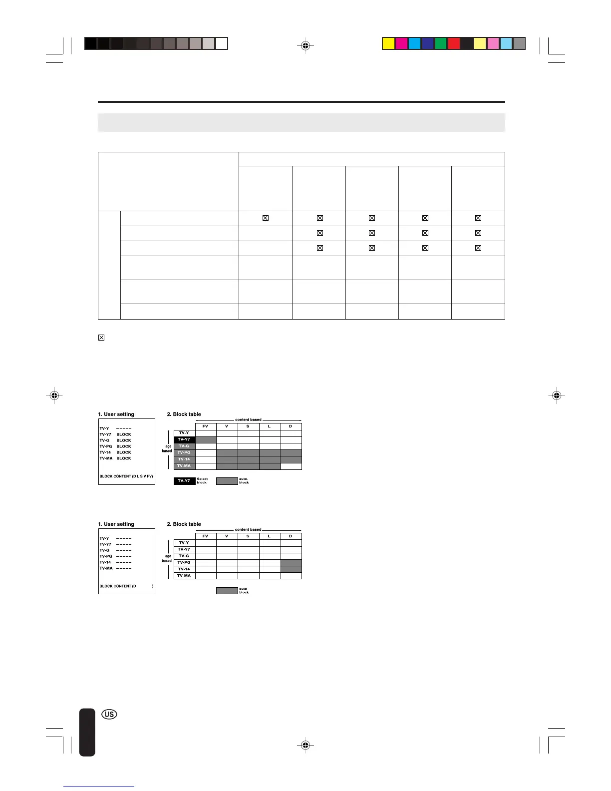 • Age-based ratings can be modified by the content-based ratings, but only in the combinations indicated by an X in