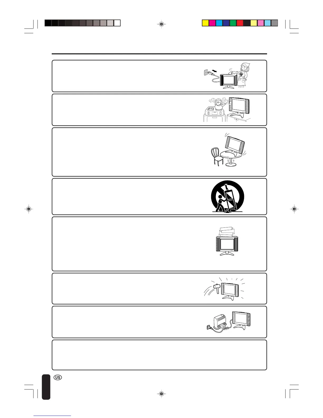 ■ Stand—Do not place the product on an unstable cart, stand,