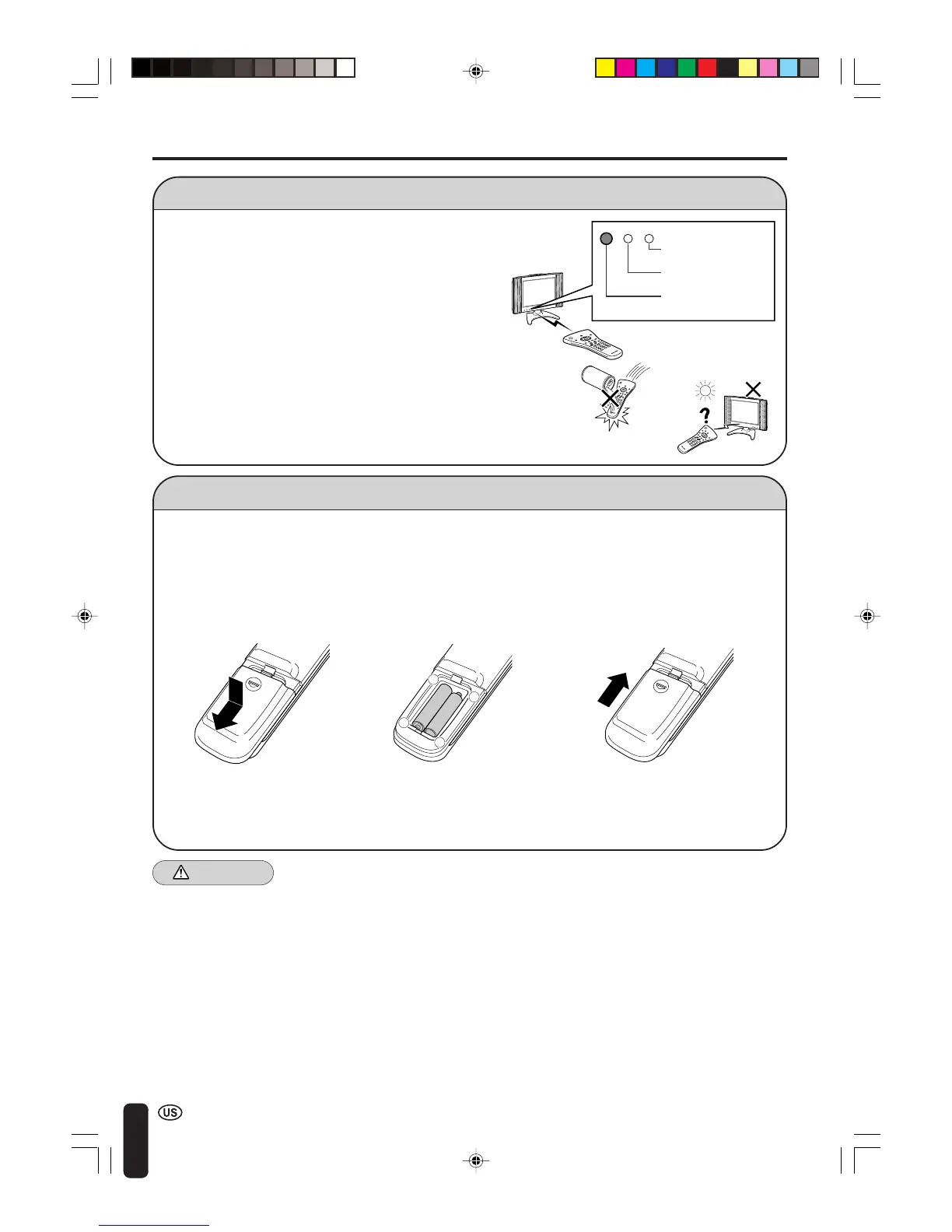 • If the remote control will not be used for an extended period of time, remove the batteries from the