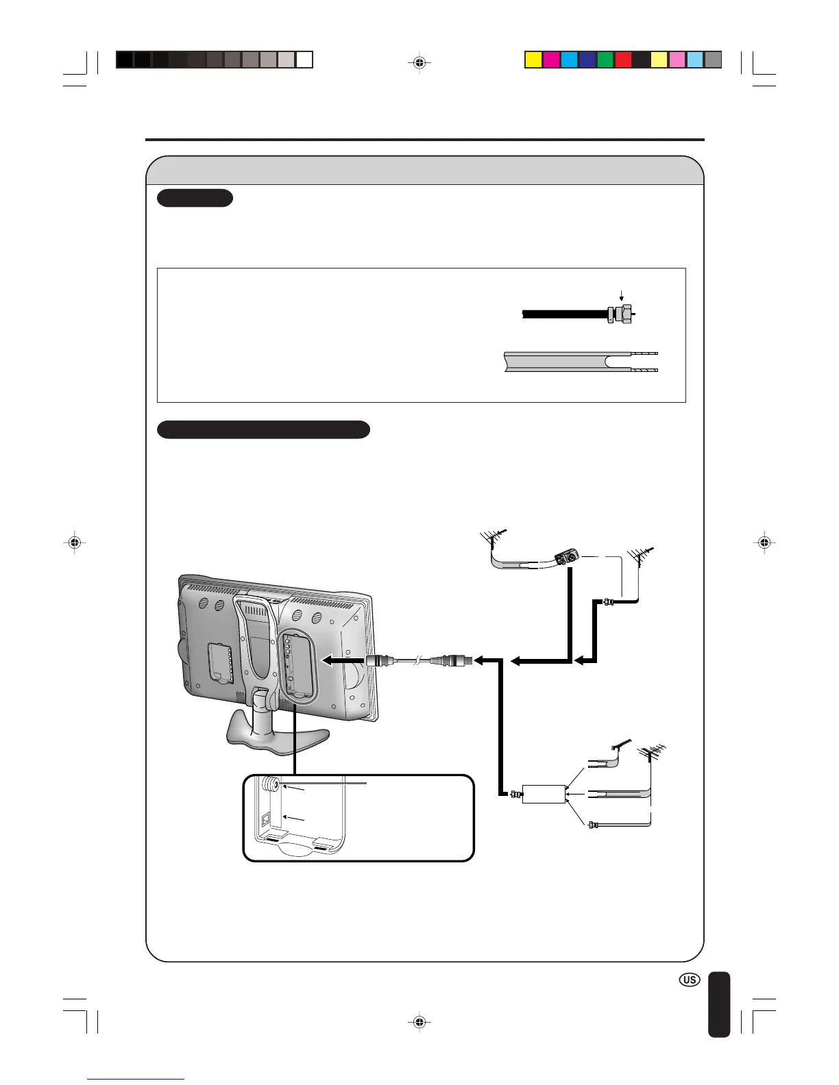 • Connect the outdoor antenna cable lead-in to ANT. (Antenna terminal) on the rear of the TV set.