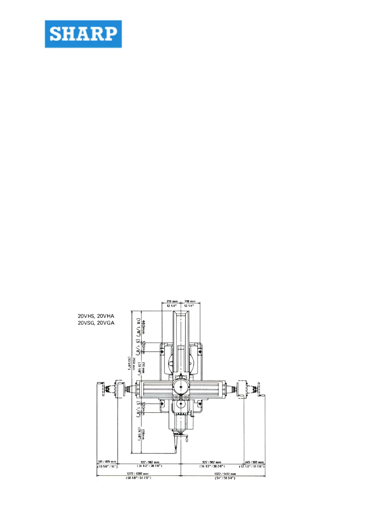 Sharp LC-20VSG - Unpacking Cautions and Procedures; Required Machine Floor Space