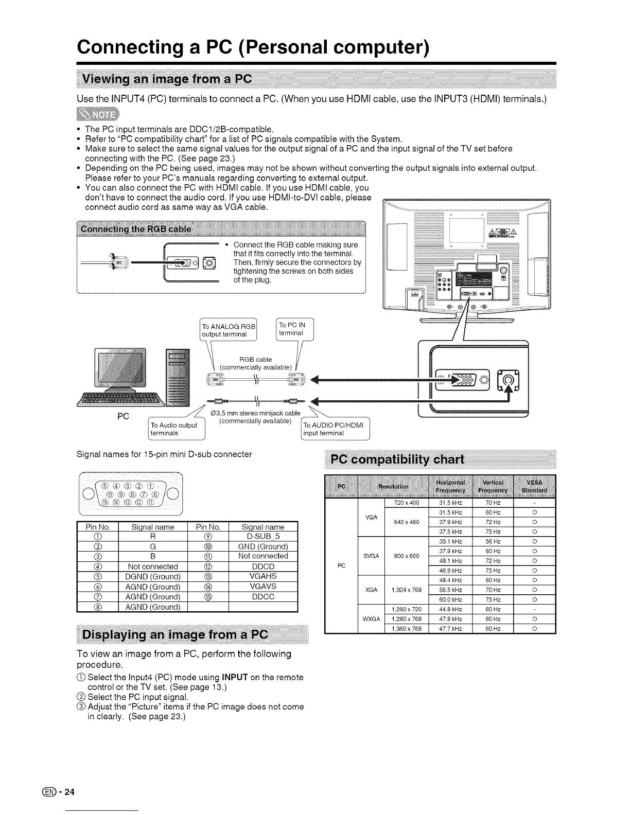 • Refer to "PC compatibility chart" for a list of PC signals compatible with the System.