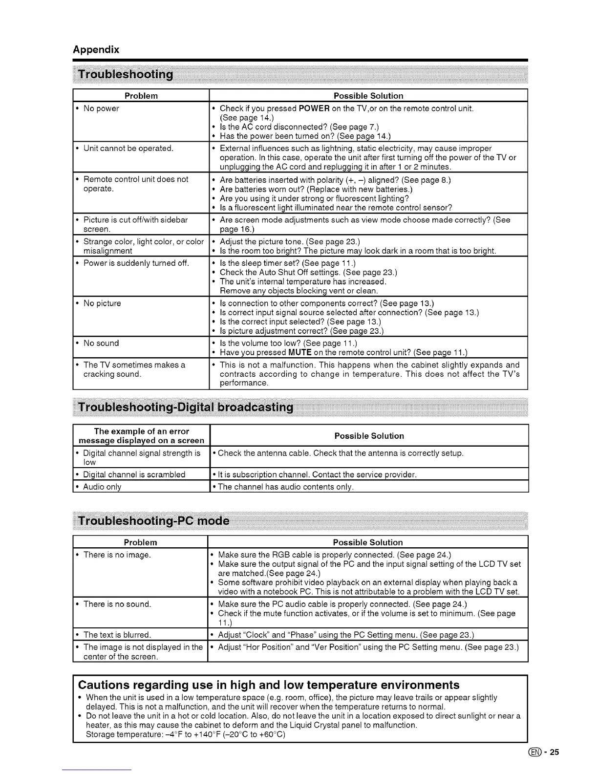 • No power • Check if you pressed POWER on the TV,or on the remote control unit.