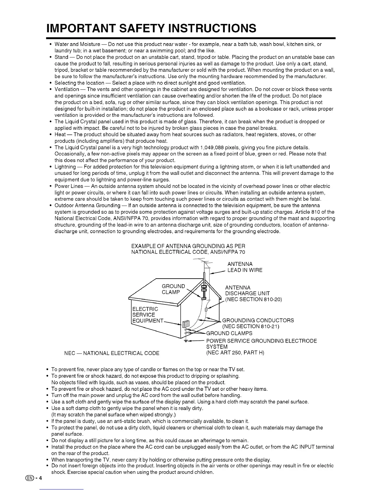 structure, grounding of the lead-in wire to an antenna discharge unit, size of grounding conductors, location of antenna-