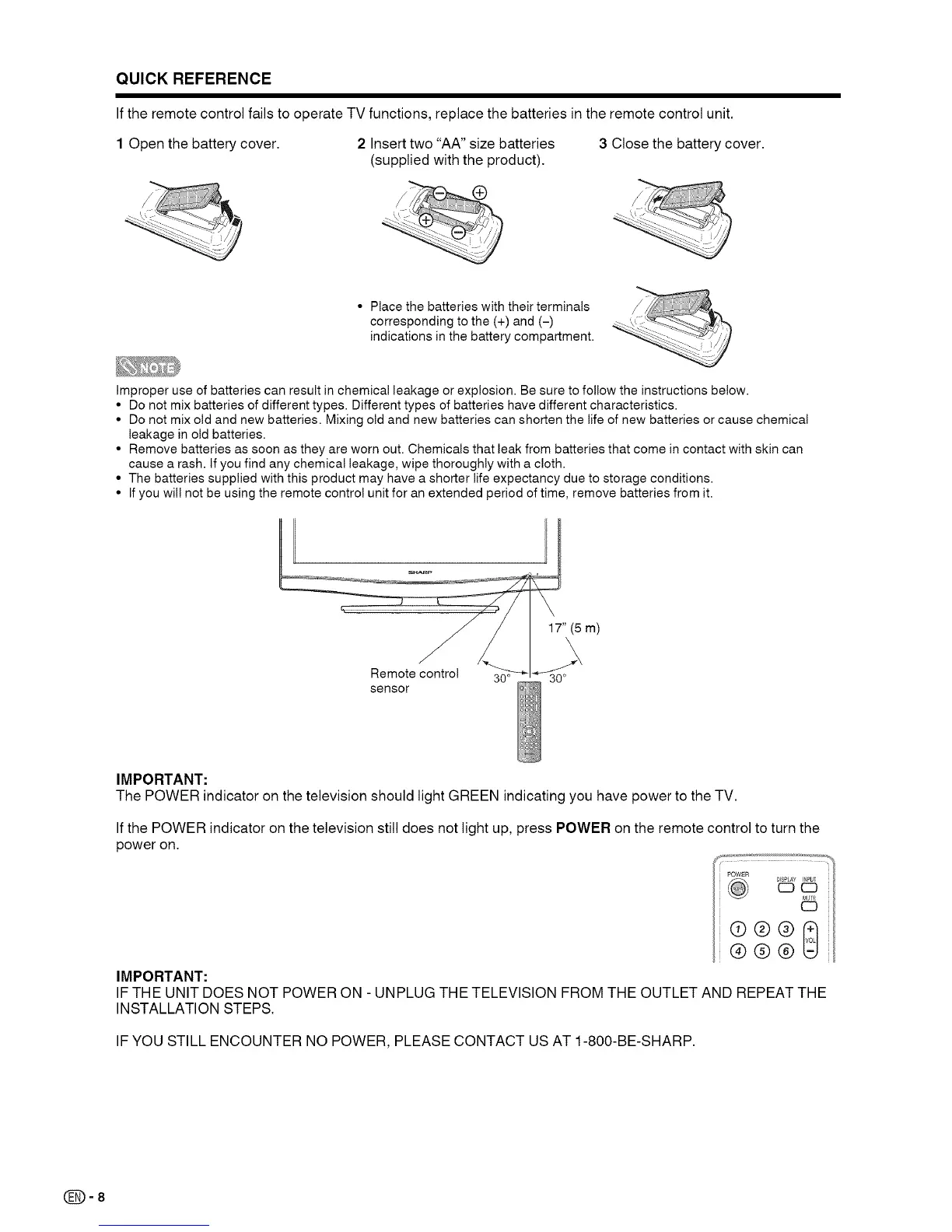 IF YOU STILL ENCOUNTER NO POWER, PLEASE CONTACT US AT 1-800-BE-SHARP.