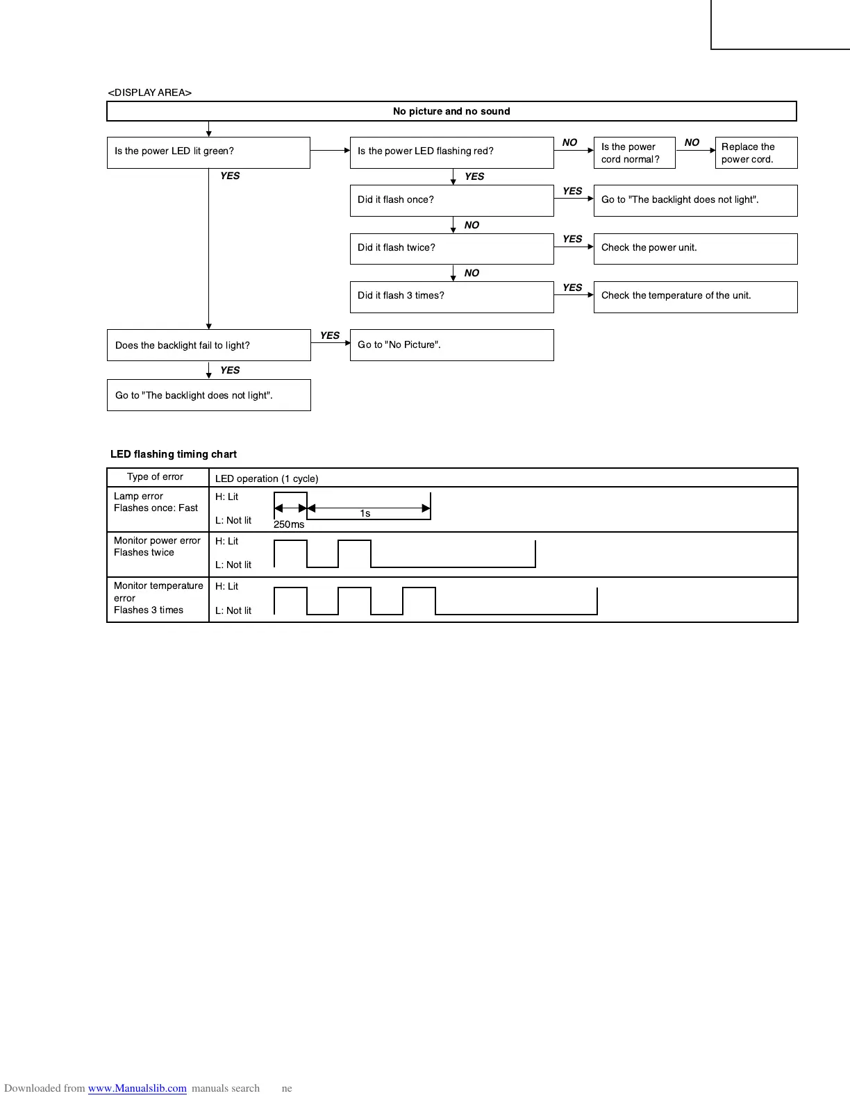 LED flashing timing chart