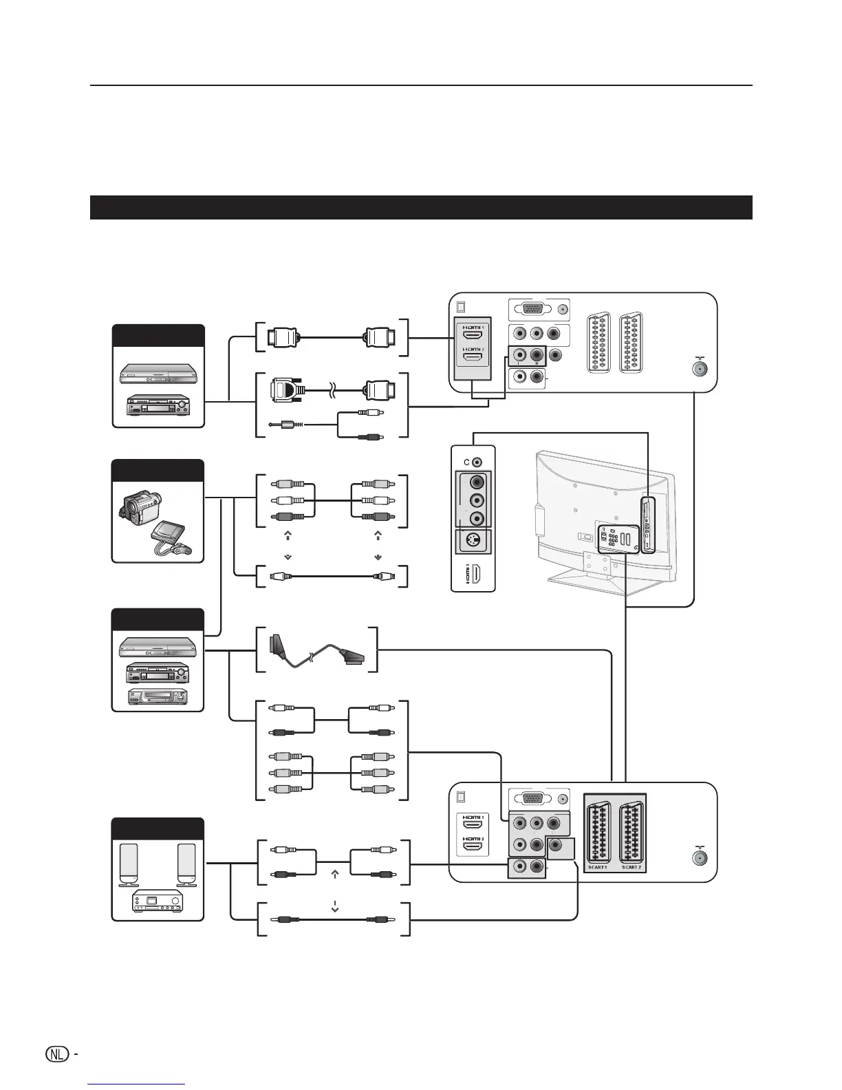 Lees aandachtig de bedieningshandleiding van elk extern apparaat voor mogelijke aansluittypes� Dit helpt u ook •