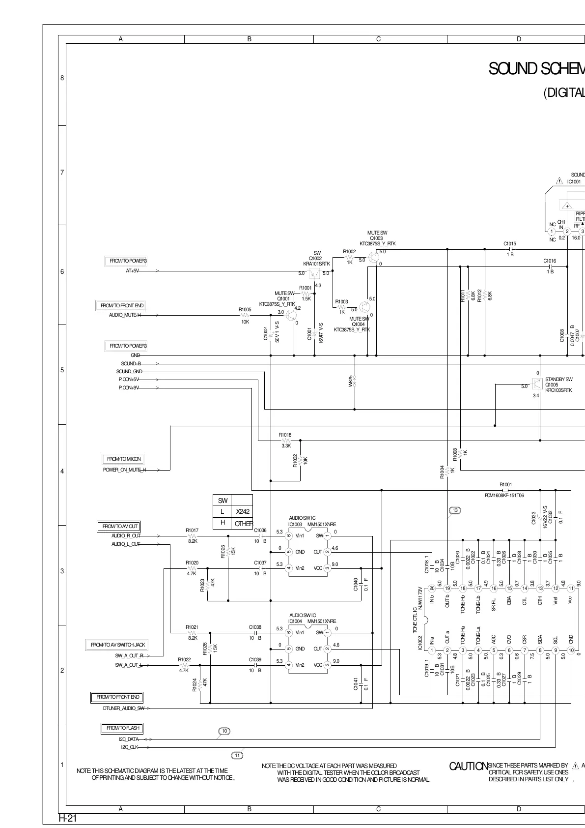 NOTE:THE DC VOLTAGE AT EACH PART WAS MEASURED