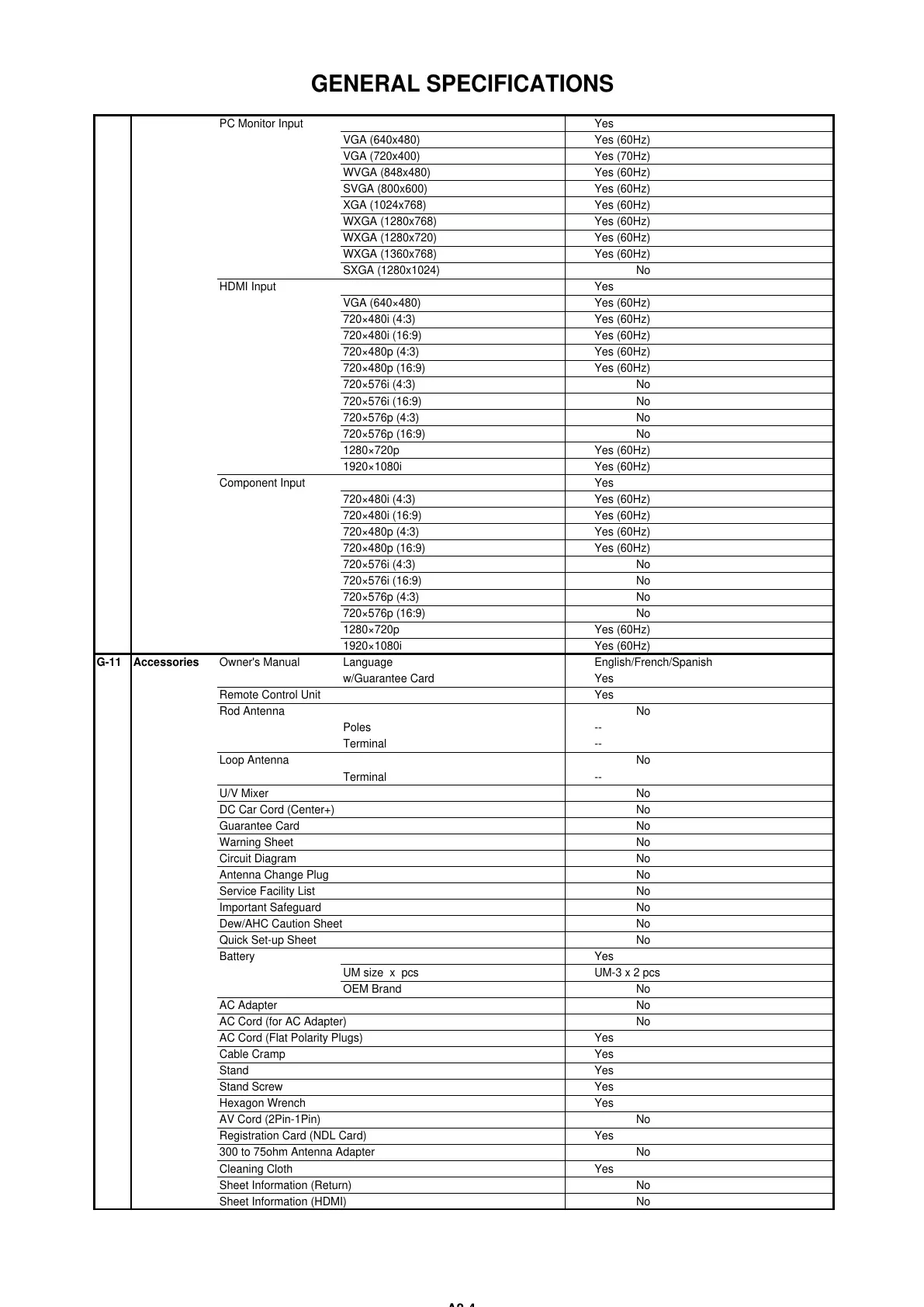 G-11 Accessories Owner's Manual Language English/French/Spanish