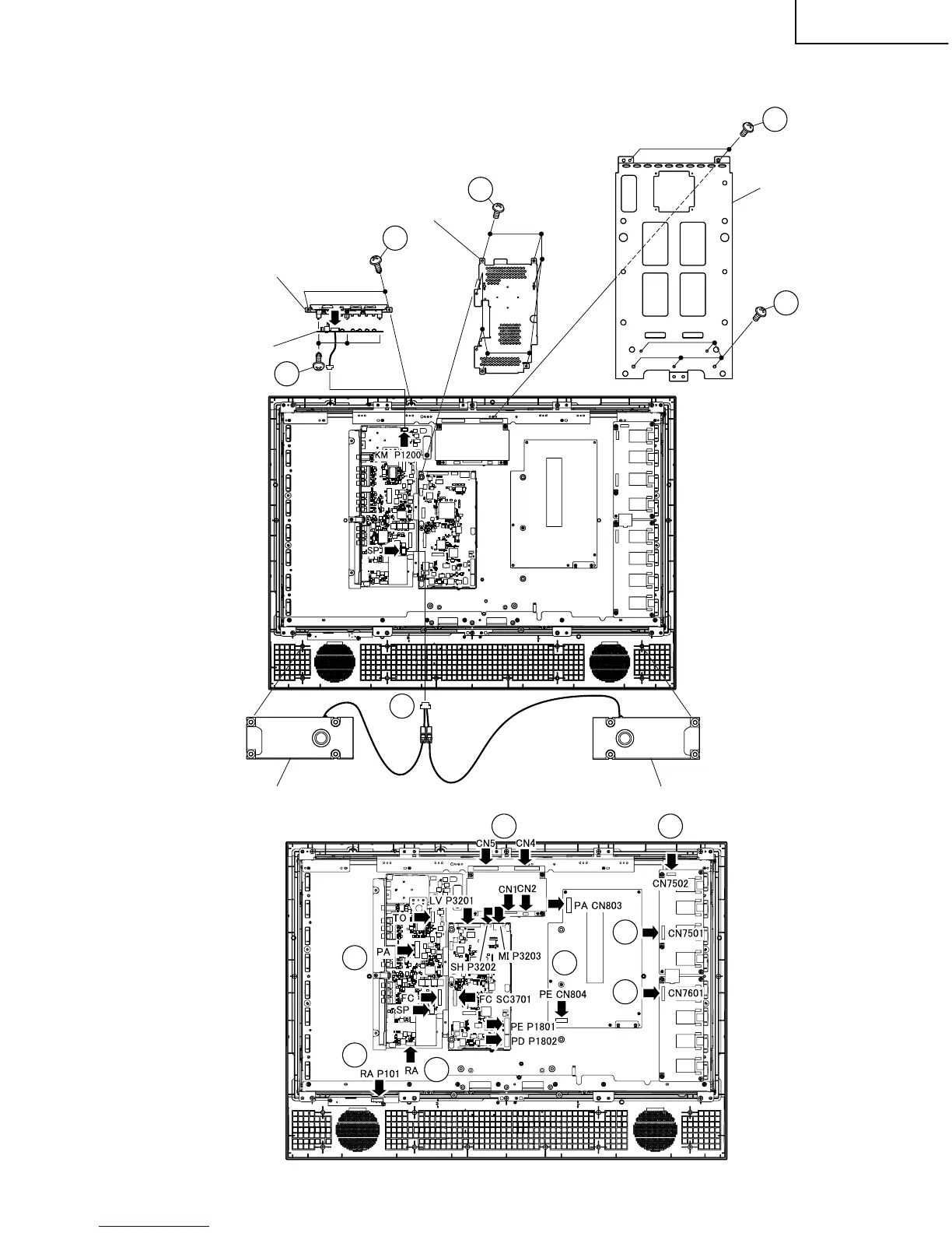 10. Remove the main unit shield (top) fixing screws (7 pcs.).