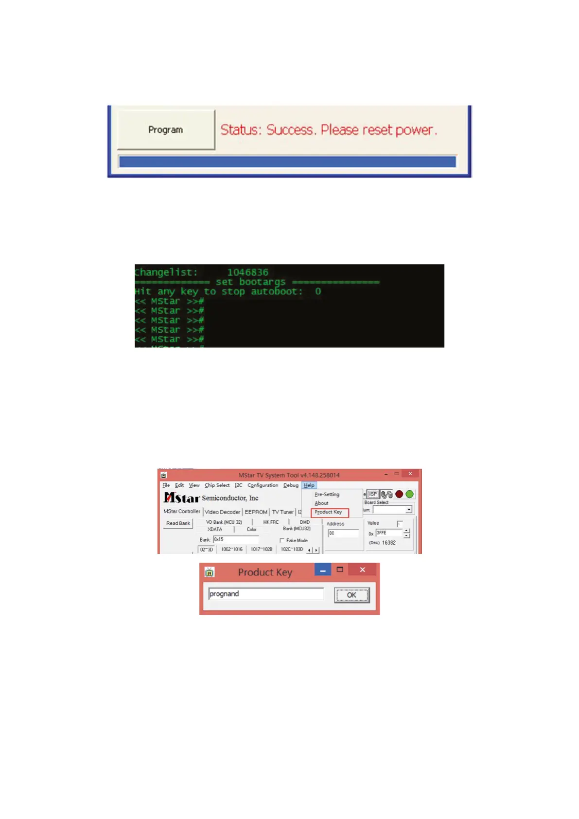 you will enter the Mboot of the TV(as the following picture). In the Mboot, you can input