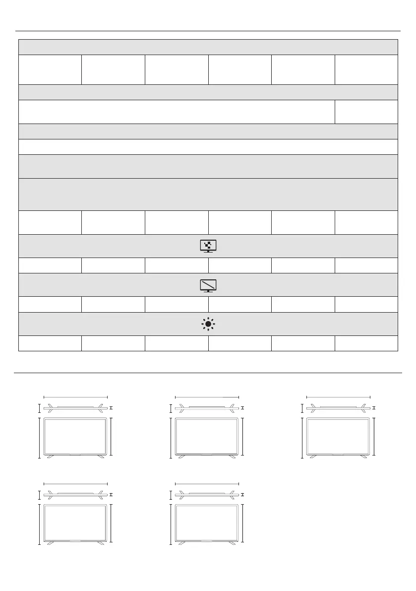 32" / 81cm 32" / 81cm 40" / 102cm 43" / 109cm 49" / 123cm 55" / 139cm