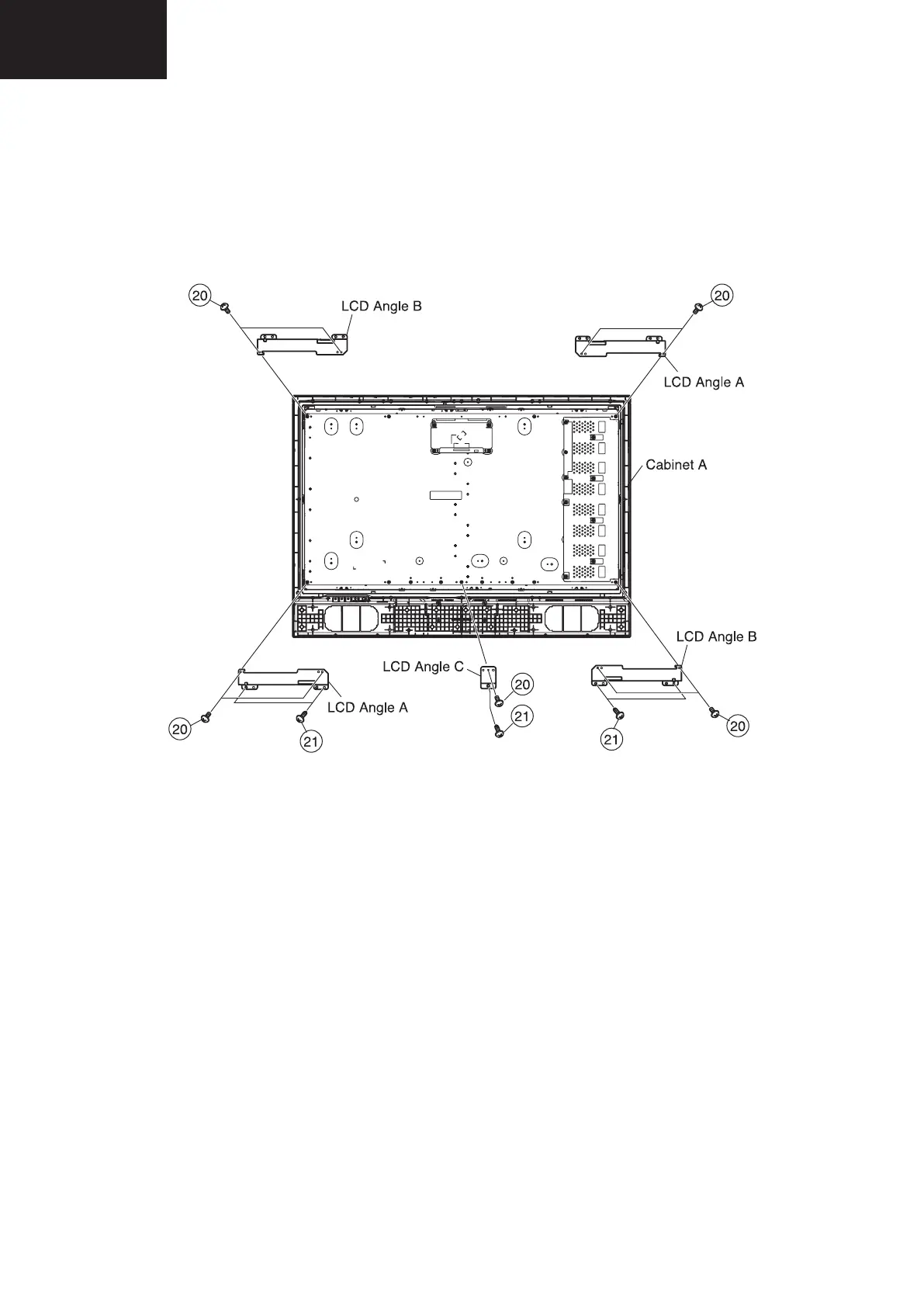 21. Remove the LCD angle to Cabinet-A fixing screws (5 pcs.).