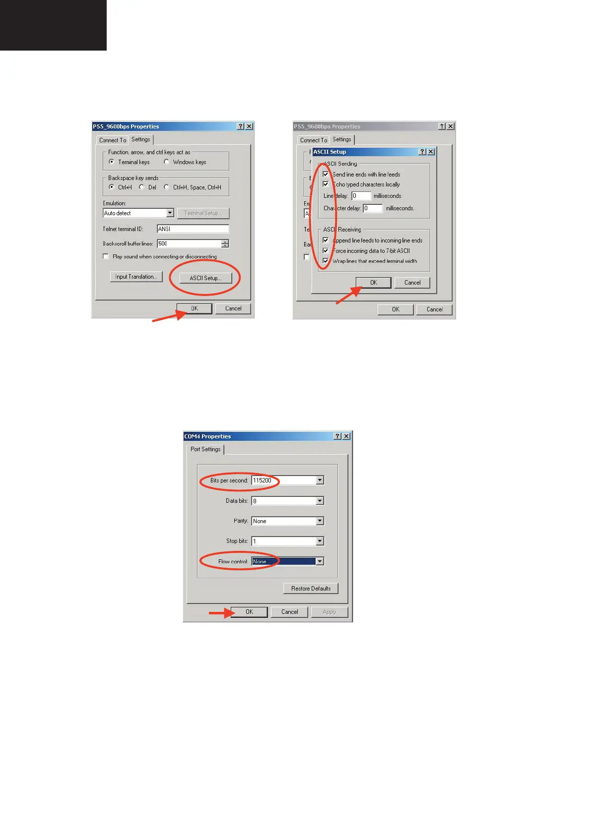 8. Select a the same COM port used in item 2 and select the Port Settings properties as follows: