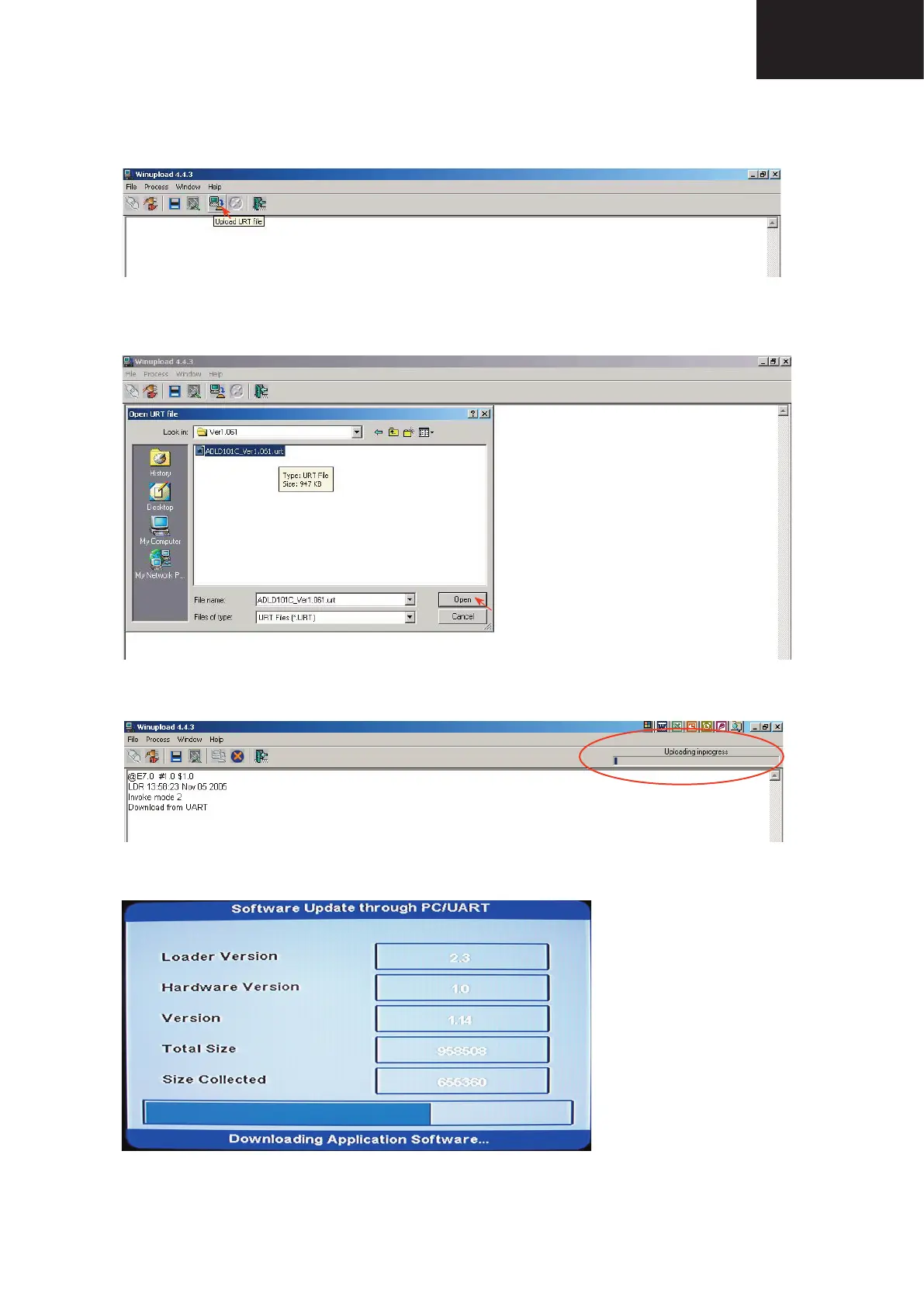While the TV set is uploading the software, the following information is shown on the TV set screen.
