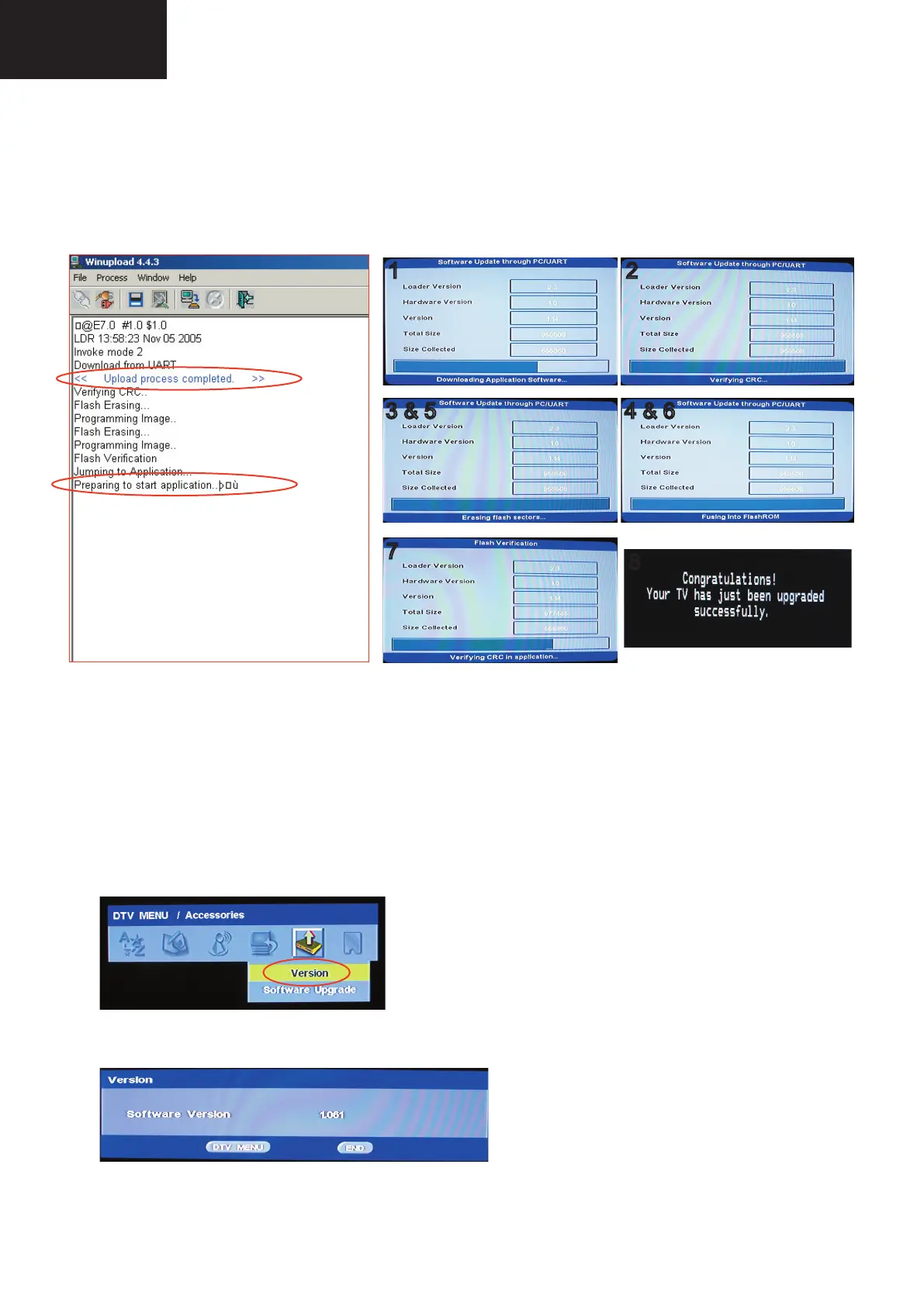 “Winupload” screen. Now, the TV set made some additional verifi cation (Items #2 to #7). When the full