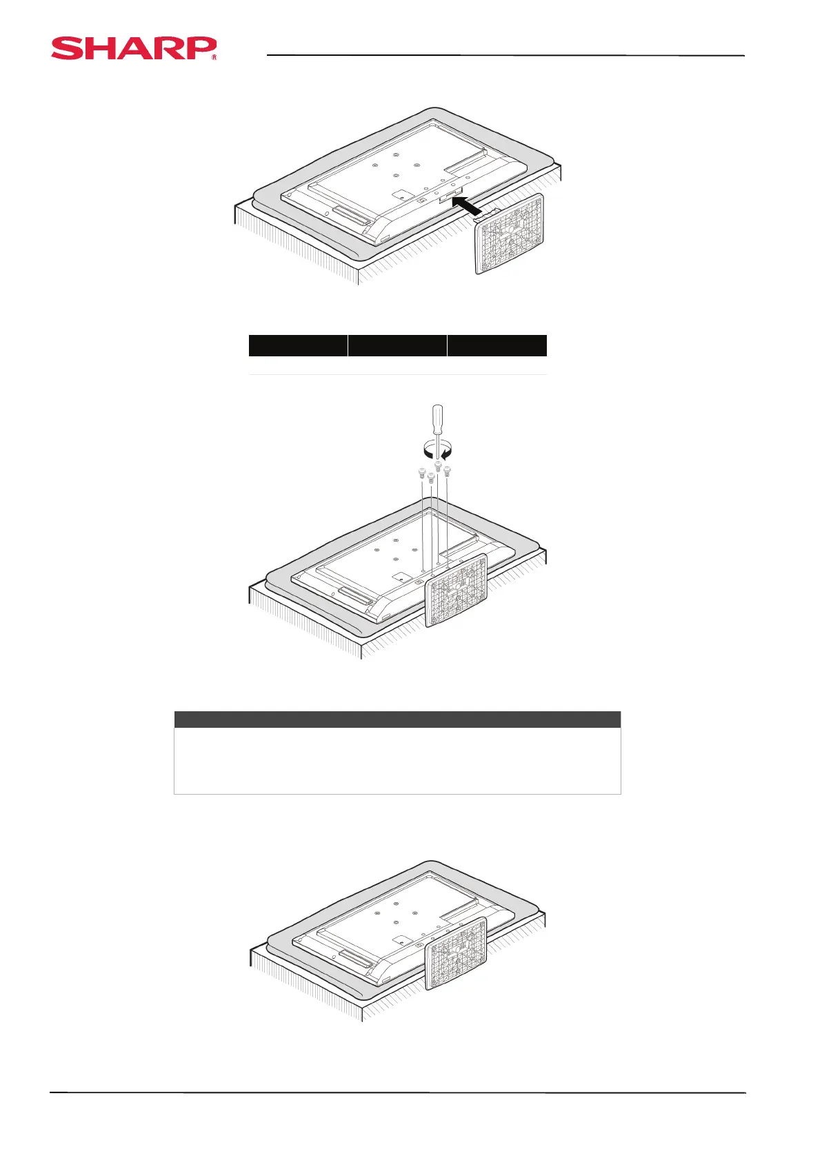4 Secure the TV stand to your TV with the four provided M4 (10 mm) screws. (These are the short screws.)