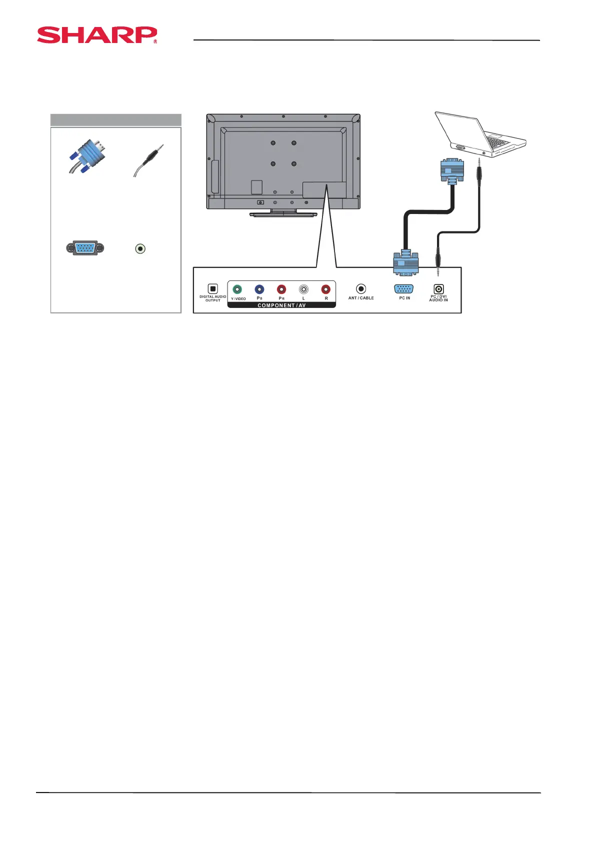 2 Connect a VGA cable (not provided) to the PC IN jack on the back of your TV and to the VGA jack on the