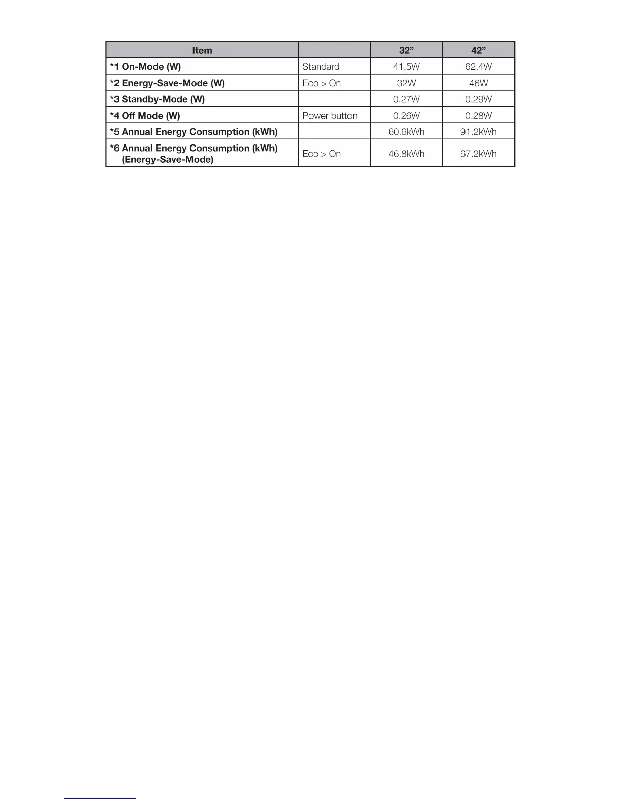 *6 Annual energy consumption is calculated on the basis of the Energy-Save-Mode power consumption, watching TV 4 hours a day, 365 days a year.