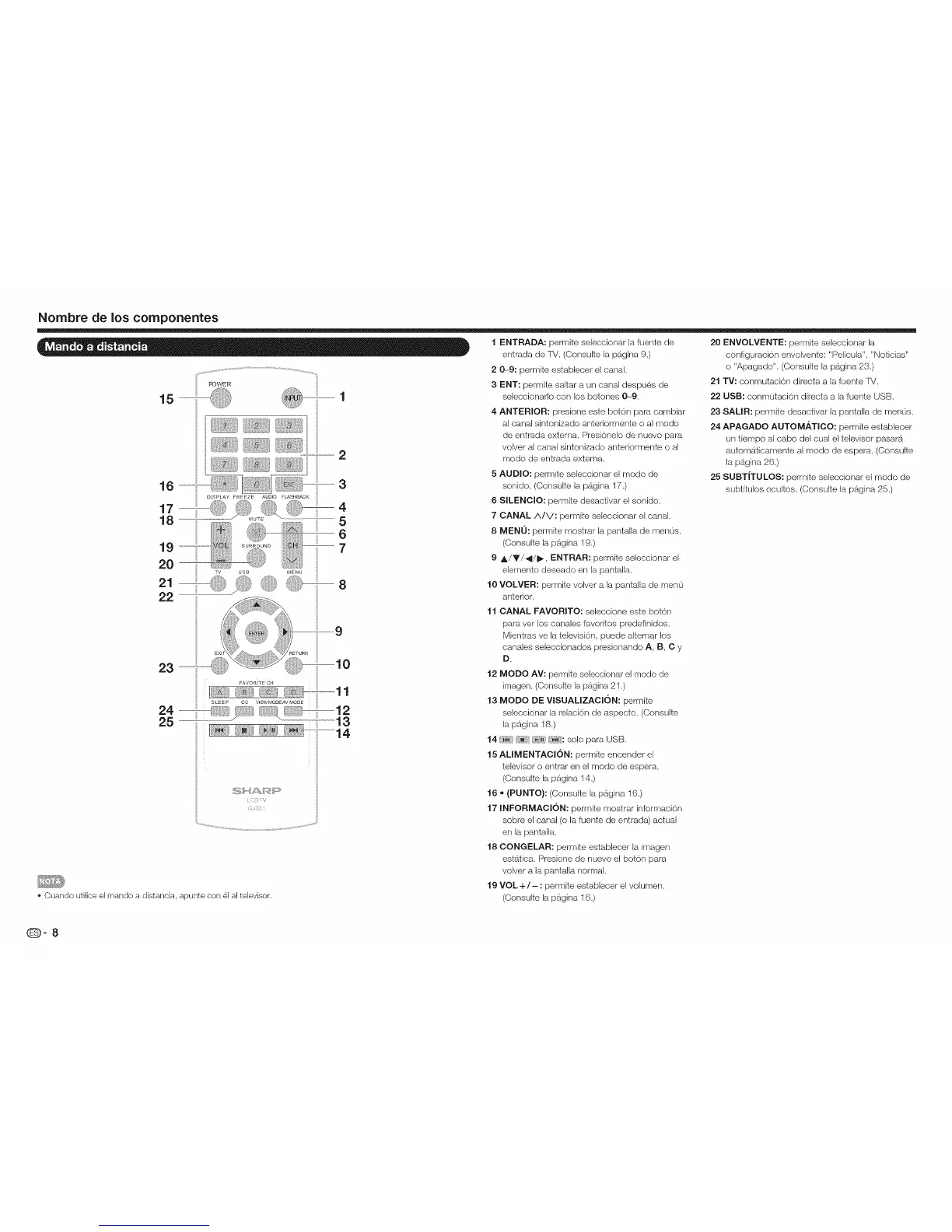 • Cuando utilice el mando a distancia, apunte con el al televisor.