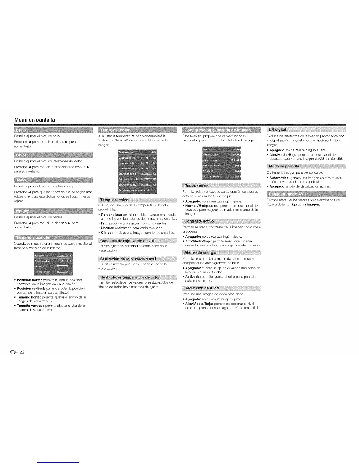 Activado: permite ajustar el bri,o de la panta,a
