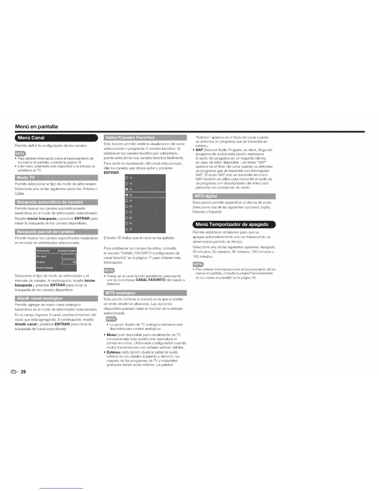la secci6n "CANAL FAVORll"O (configuraci6n de