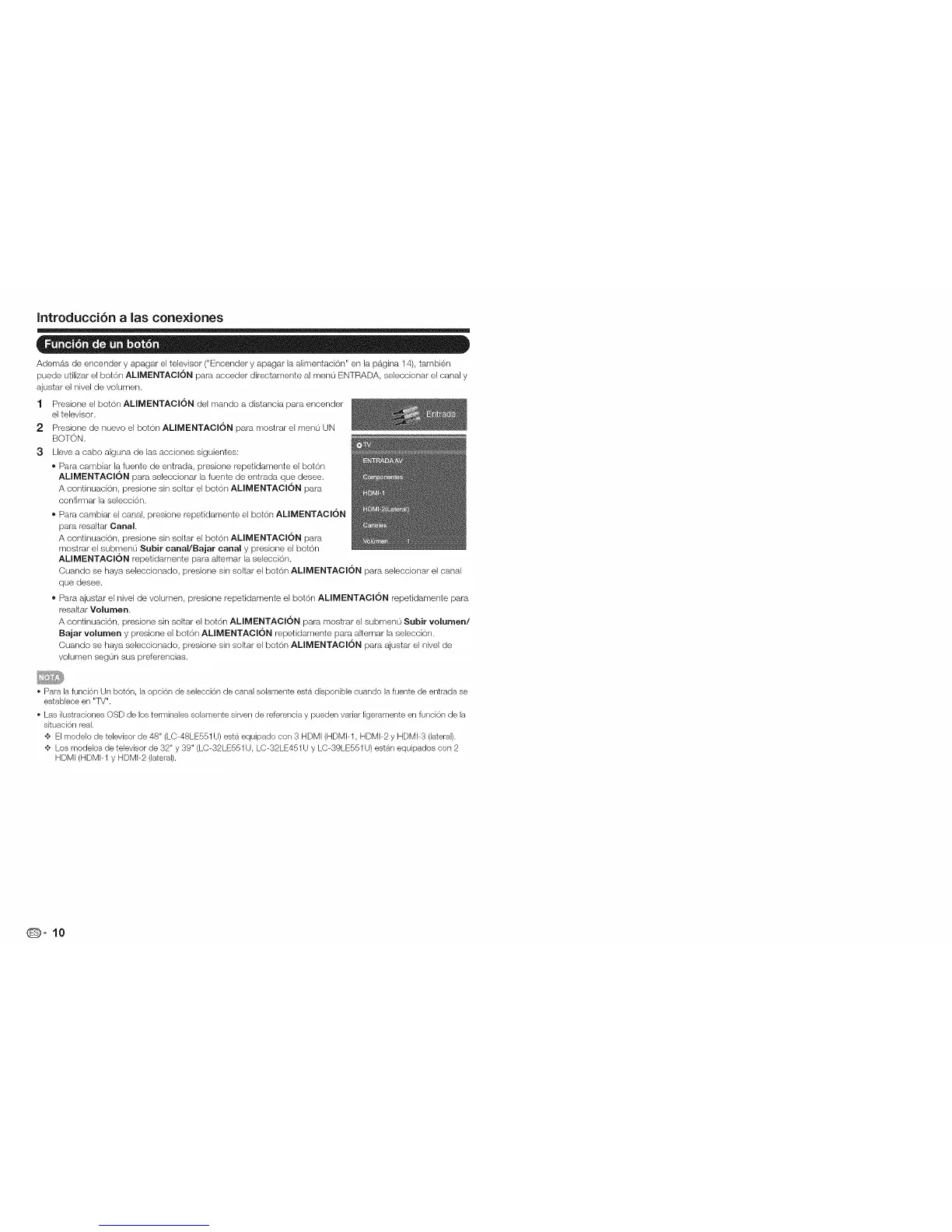 o;, Los modelos de televisor de 32" y 39" (LC-32LE551 U, LC-32LE451U y LC-39LE551 U) estan equipados con 2