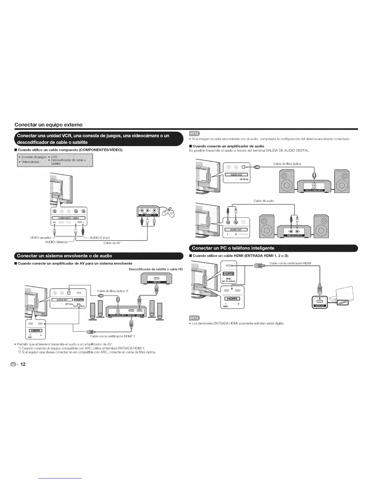 •2 Si el equipo que desea conectar no es compatible con ARC, conecte un cable de fibra 6ptica.