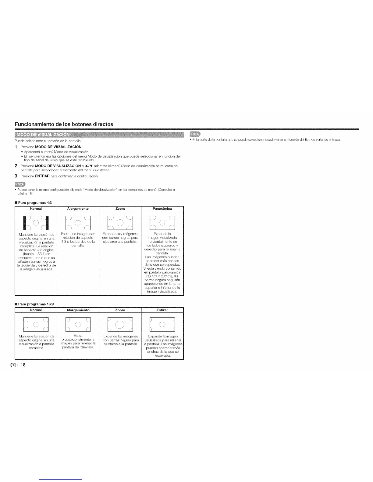 Puede seieccionar el tamafio de la pantalla. • Eitamat_o de la pantalla que so puede seieccionar puede variar en funci6n del tipo de serial de entrada.