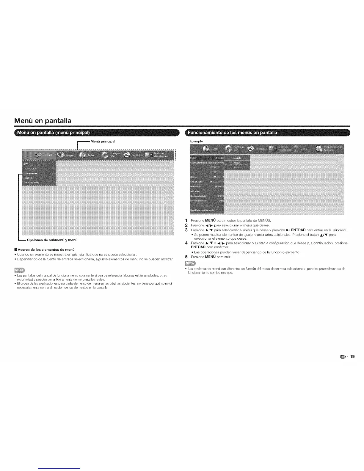 ®Dependiendo de la fuente de entrada seleccionada, algunos elementos de menu no se pueden mostrar.