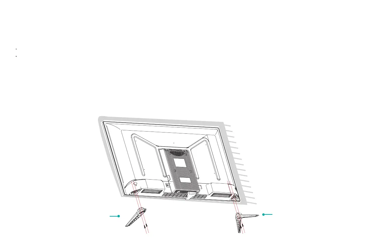 3. Use the 4 screws in the accessory bag to secure the base stand to the TV tightly.