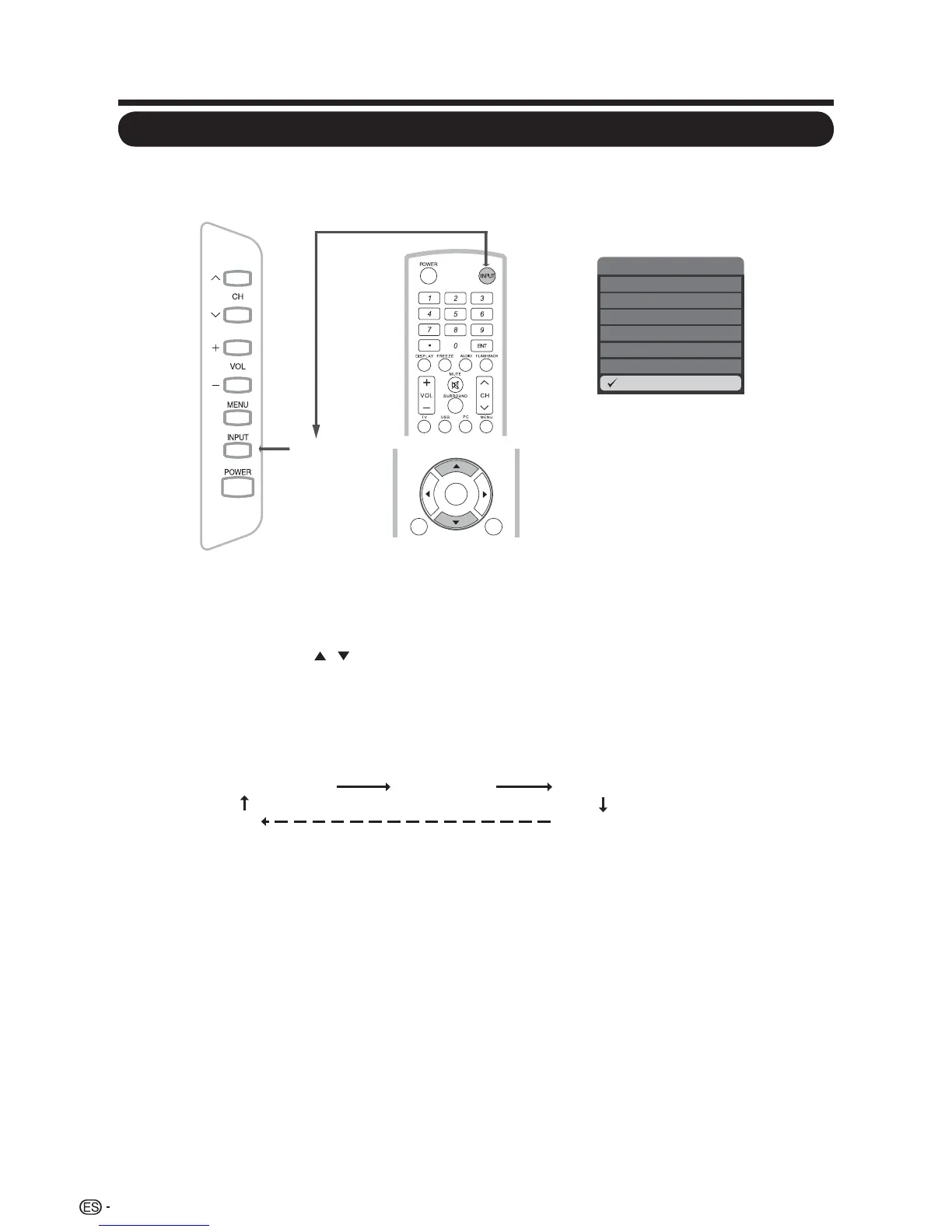 • También puede seleccionar la fuente de entrada presionando el botón INPUT