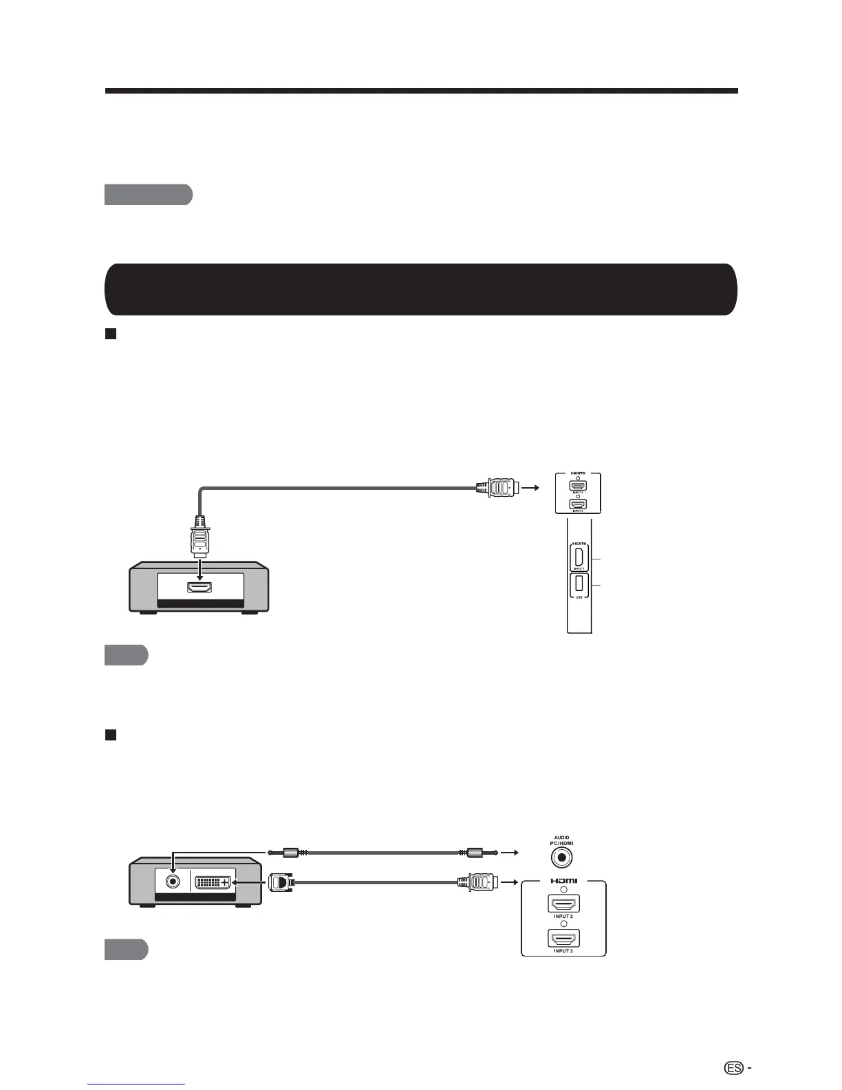 Al utilizar un cable de conversión DVI-HDMI (INPUT (ENTRADA) 1, 2, o 3):