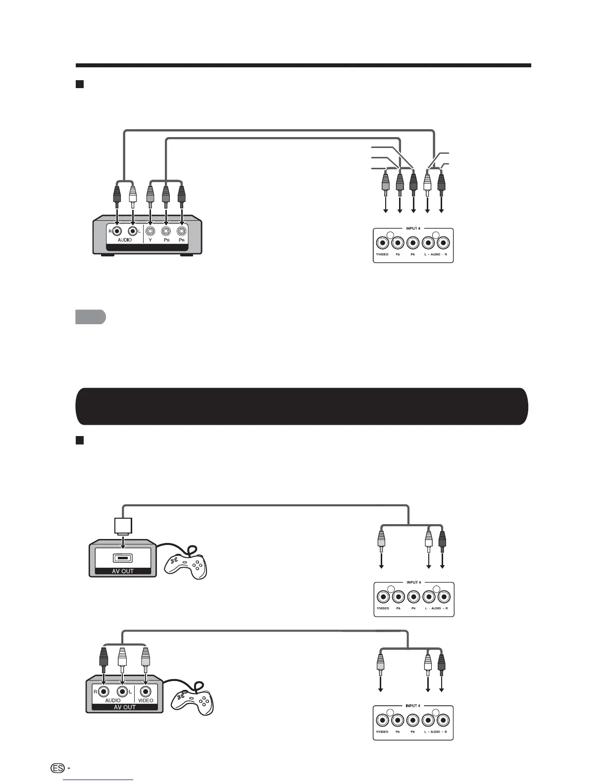 Conexión de una consola de videojuegos, videograbadora, videocámara o