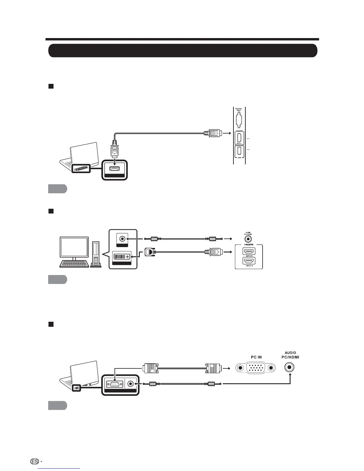 Al utilizar un cable de conversión DVI-HDMI (INPUT (ENTRADA) 1, 2, o 3):