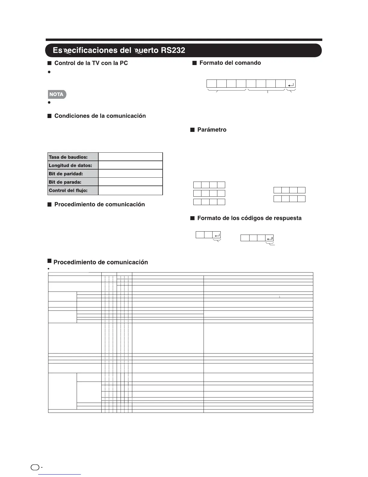 Comando de 4 dígitos Parámetro de 4 dígitos Código de devolución