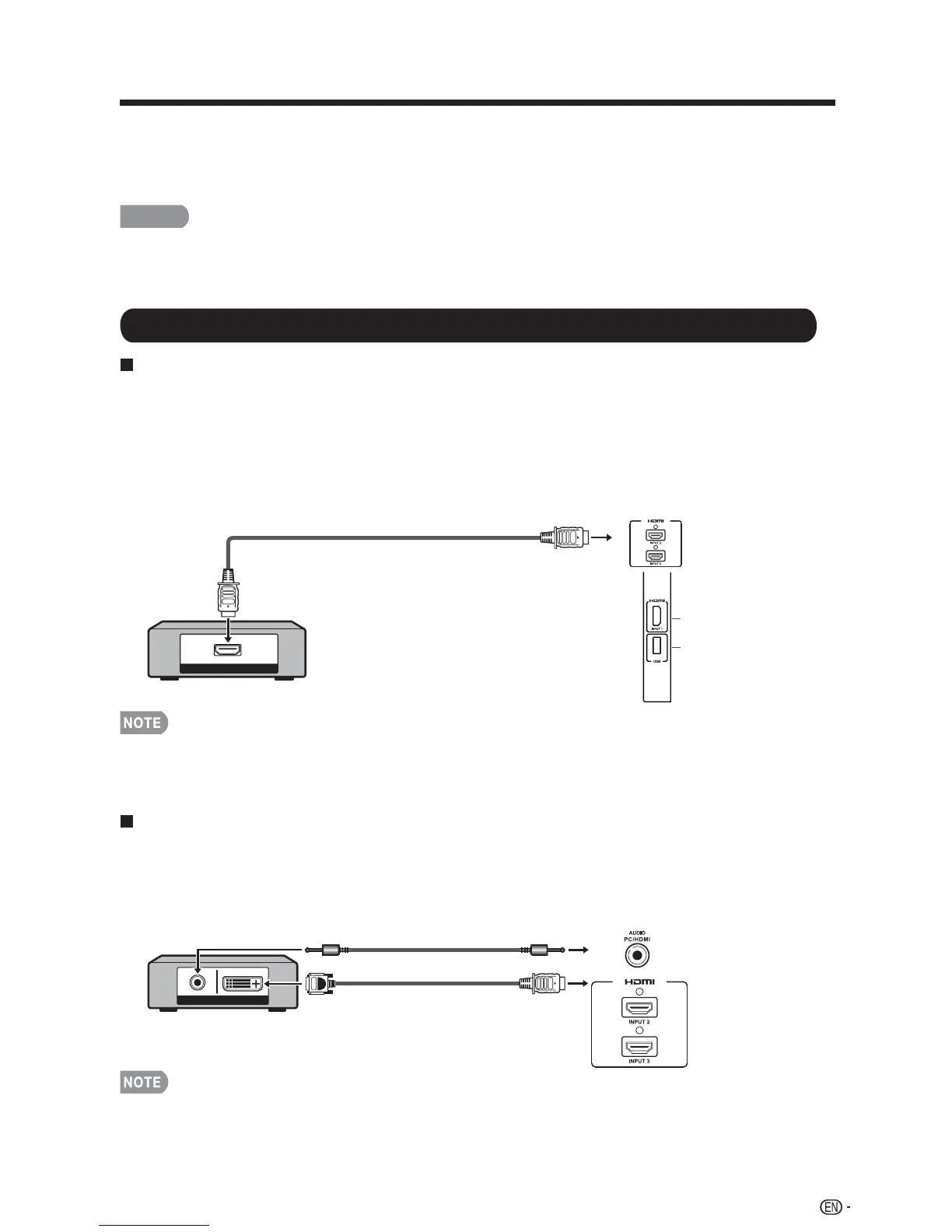 • When using a DVI-HDMI conversion cable, you should make an analog audio connection. In this