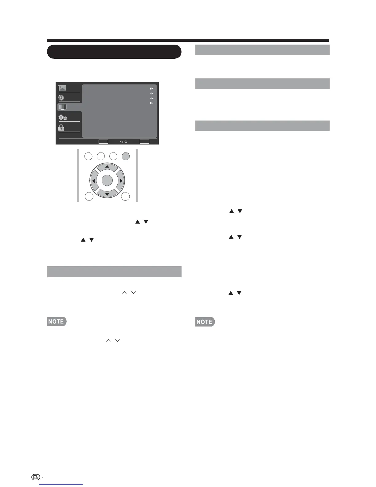 and press ENTER or to set the item.