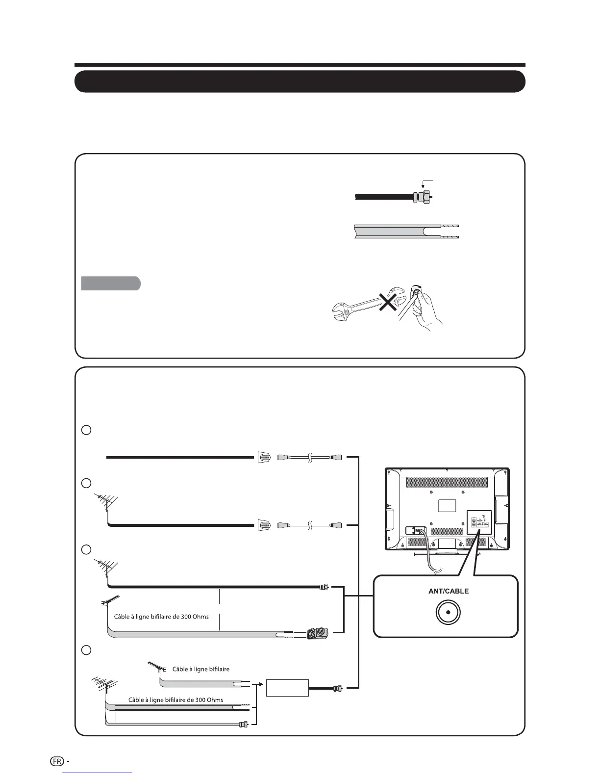 Branchez le câble d'antenne au téléviseur en utilisant l'une des méthodes illustrées •