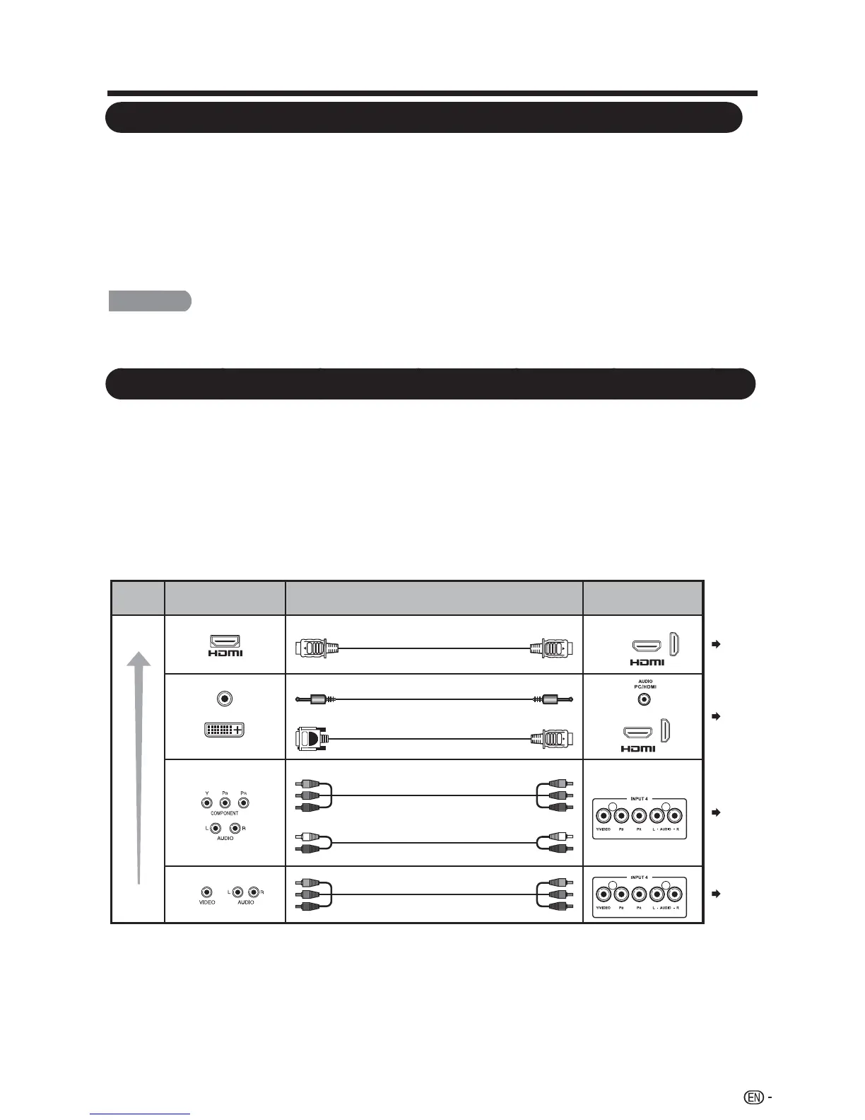 Pour connecter le téléviseur à un équipement externe, utilisez des câbles disponibles