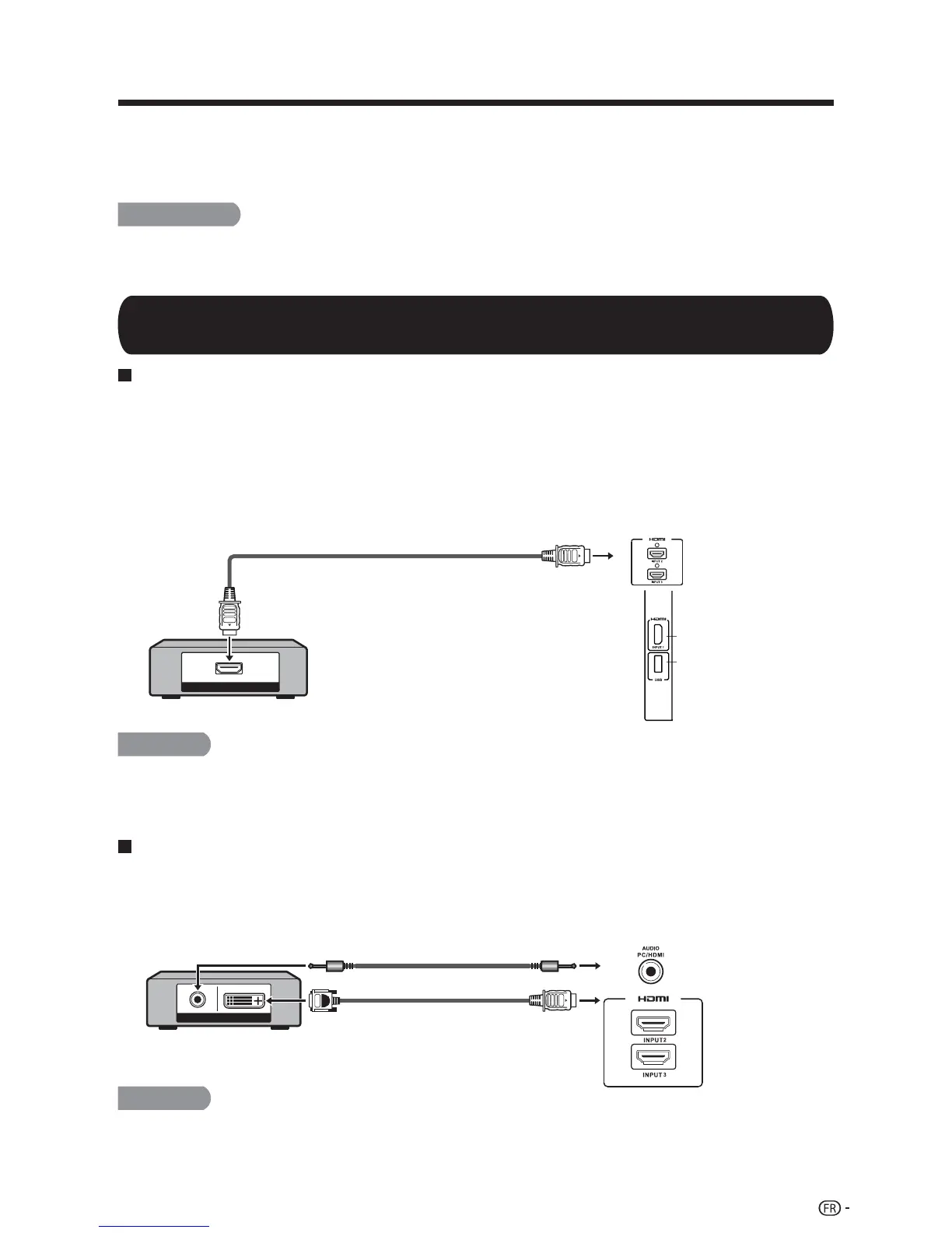 ● Veuillez lire le manuel de l'utilisateur de l'appareil correspondant (lecteur de disque Blu-ray, etc.) avant