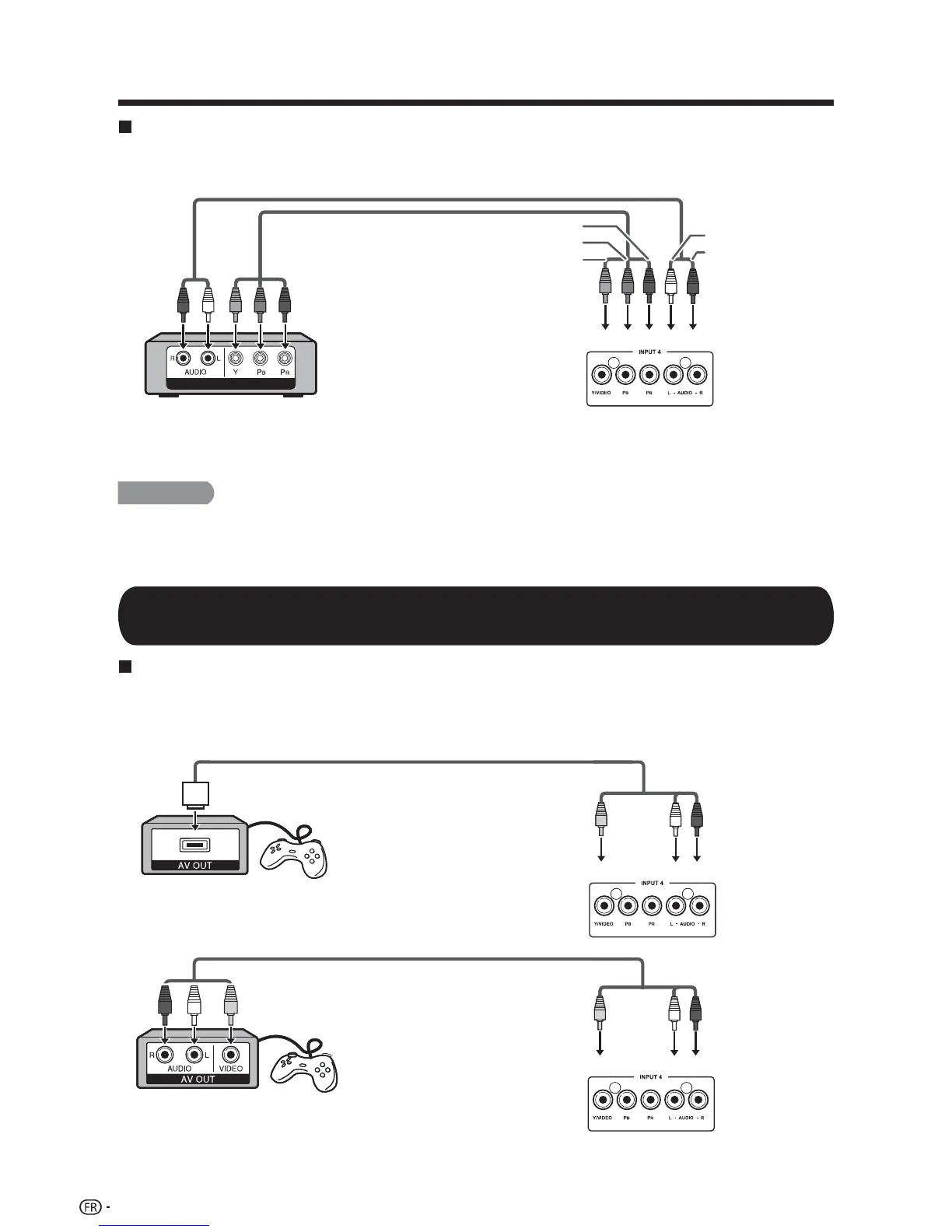 ● Veuillez consultez la page 19 pour la connexion d'un lecteur de disques Blu-ray, d'un lecteur DVD ou d'un