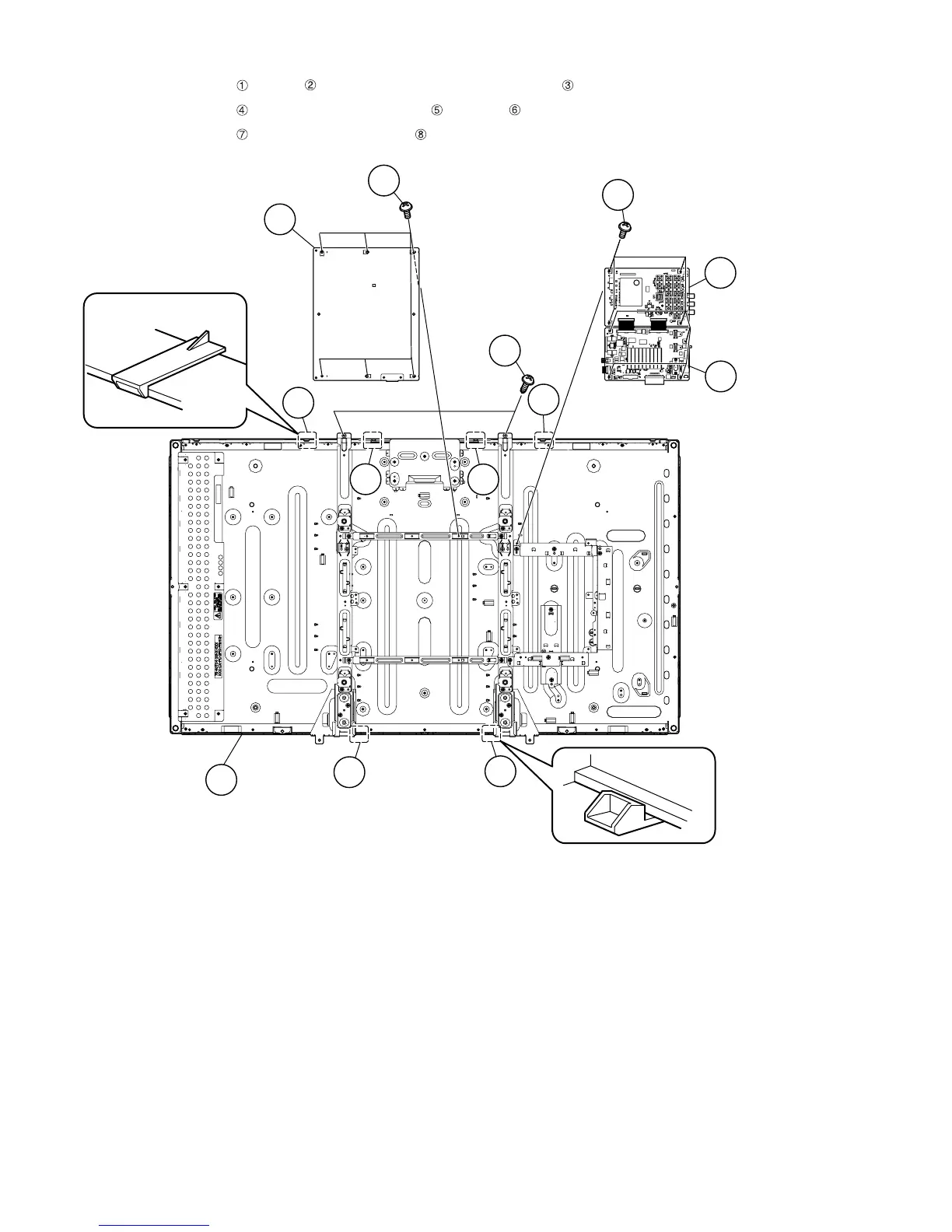 1. Remove the 2 lock screws , 6 hooks and detach the 40” LCD Panel Module Unit .