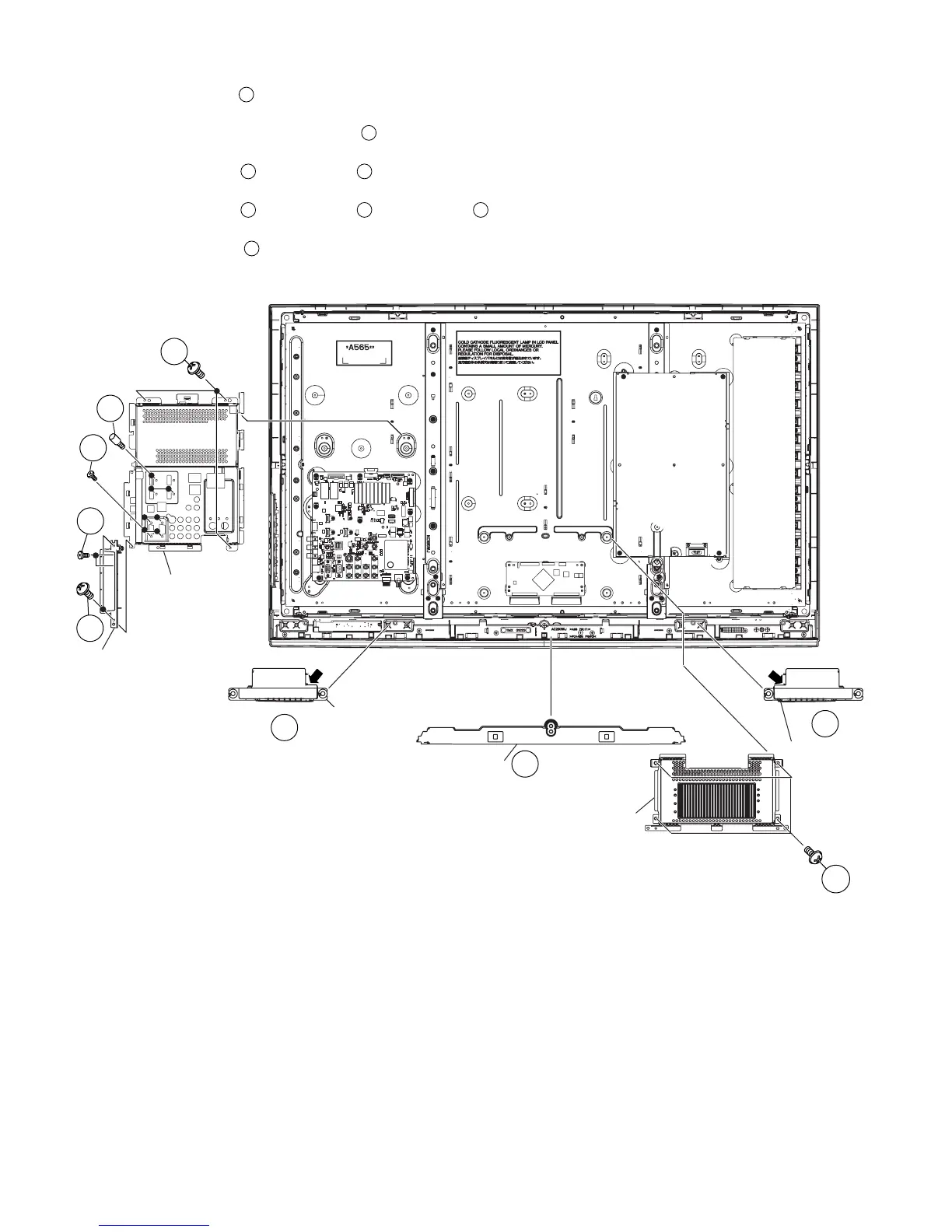 5. Remove the 4 lock screws and detach the Control Shield Ass’y (LC-40E77U).