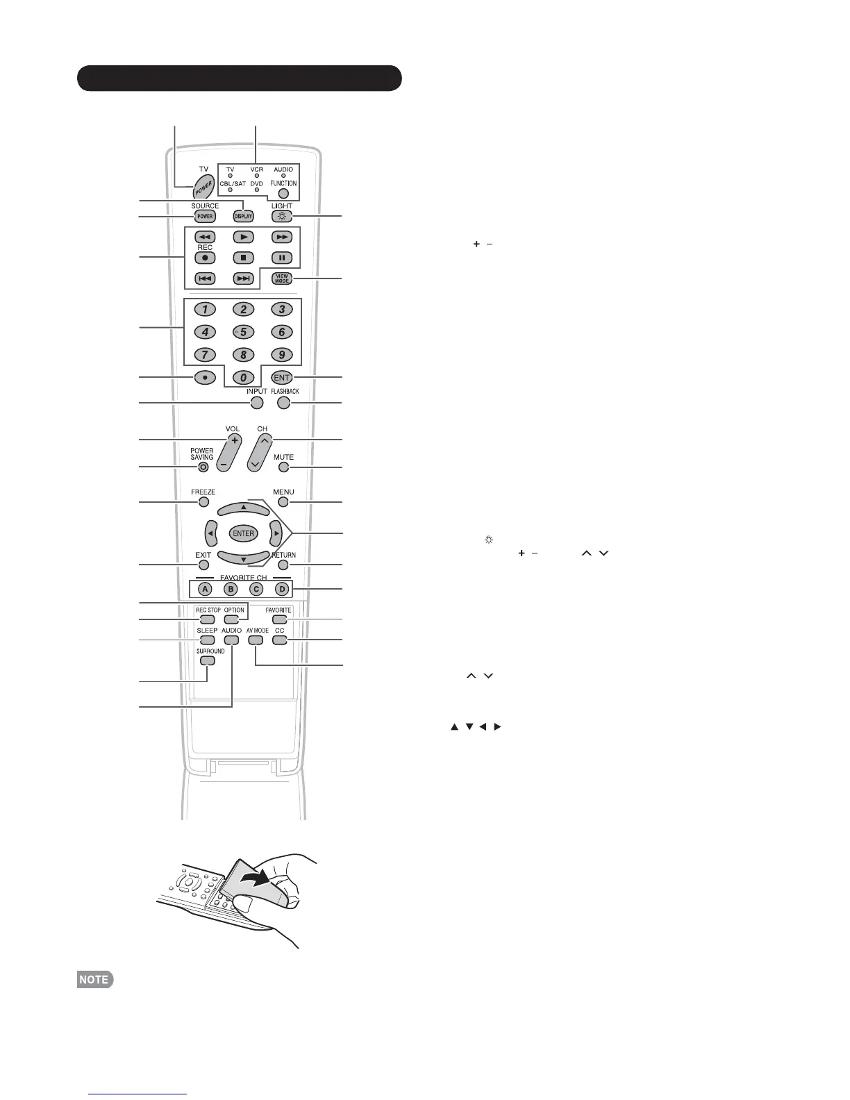 A, B, C, D: Select 4 preset favorite channels in 4 different
